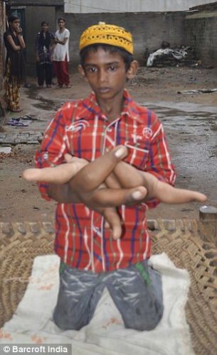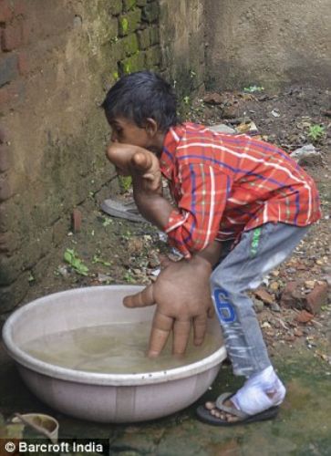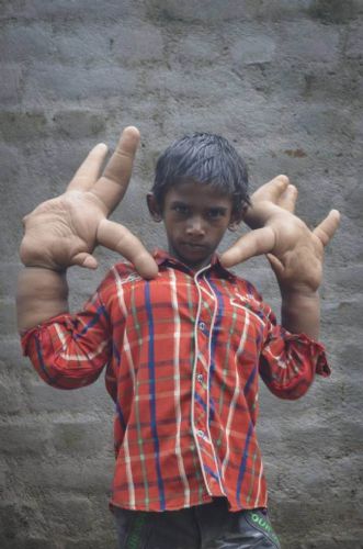 Hindistan'da yaşayan Kaleem adındaki çocuk bedeni büyüklüğündeki ellerle dünyaya gelir. Bu koca eller ile ayakkabı bağını bağlamakta bile zorlanıyor. Annesi Haleema doğumdan sonra çocuğunun farklı bir durumunun olmadığını, daha sonraları ellerinin orta parmaklarından itibaren şişmeye başlayıp büyüdüğünü aktardı.