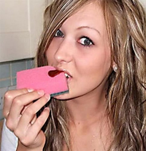 Kerry Trebilcock, bugüne kadar 4 bin sünger ve 100 kadar sabun yedi.Yenilebilir olmayan maddeleri yeme isteği uyandıran Pika hastalığından muzdarip Trebilcock, süngerleri çeşitli soslar ve baharatla veya içeceklerine banarak yemeyi tercih ediyor.