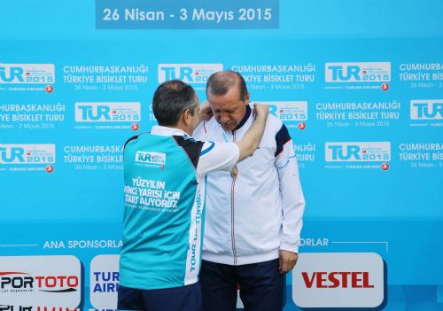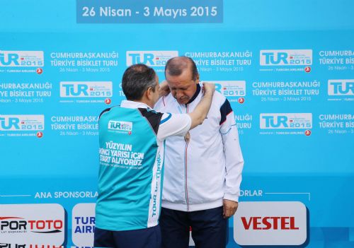 Burada kısa bir konuşma yapan Erdoğan, “Böyle bir bahar gününde ananevi hale gelmiş Uluslararası Cumhurbaşkanlığı Bisiklet Turu’nun 51’incisini bu yıl gerçekleştiriyoruz. Önümüzdeki hafta Alanya’dan bu yarış başlıyor. Bu yıl uluslararası camiada beklenenin üzerinde bir katılım söz konusu. 3 Mayıs’ta yine İstanbul’da bu uluslararası cumhurbaşkanlığı bisiklet turu tamamlanmış olacak” dedi.