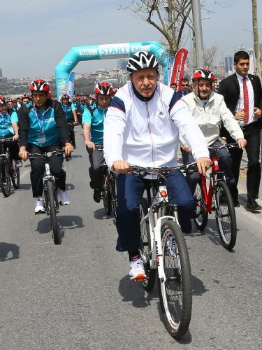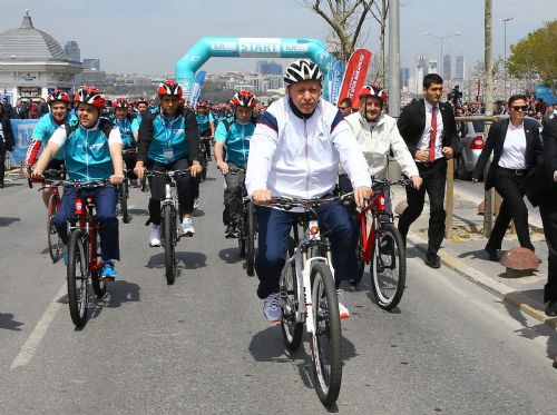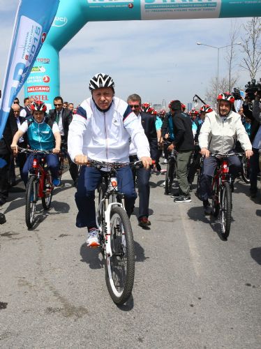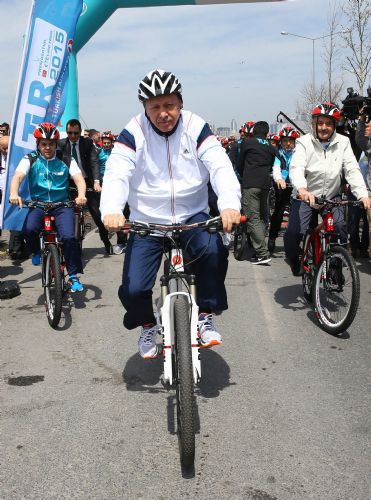 Cumhurbaşkanı Erdoğan, etkinlik başlangıcında biraz zorlansa da hasa sonra bisiklete alıştı. Salcano tarafından özel olarak üretilen bisiklete binen Erdoğan’a Sağlık Bakanı Mehmet Müezzinoğlu, Gençlik ve Spor Bakanı Akif Çağatay Kılıç ve basın mensupları da eşlik etti.