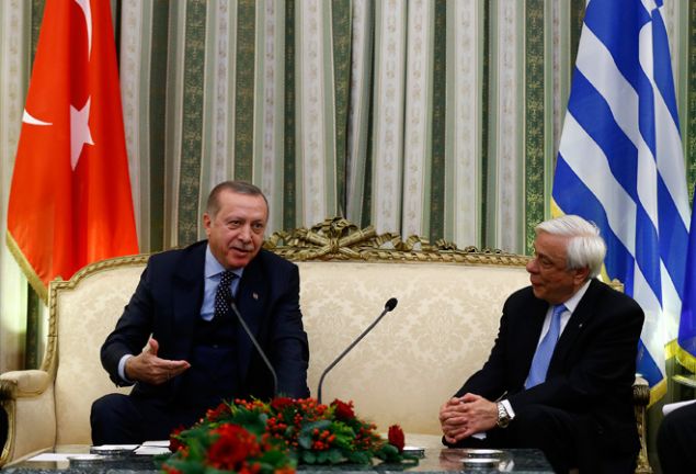 Pavlopulos'un tavırları karşısında Cumhurbaşkanı Erdoğan gayet rahat bir şekilde oturarak net cümlelerle konuşmasına devam etti.