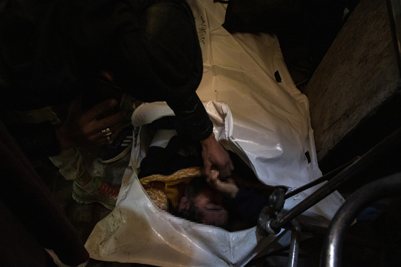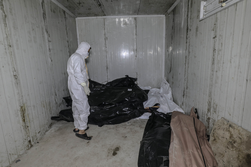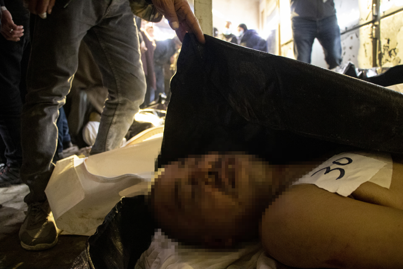 Başkent Şam'daki el-Müctehid Hastanesi'ne giden AA ekibi, burada, kefenleri üzerine hapishanelerdeki kodlara uygun numaralar yazılmış ancak isimlerin bulunmadığı cesetleri görüntüledi.