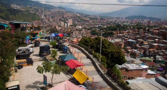 Önceleri uyuşturucu kaçakçılarının, çetelerin, paramiliter askerlerin ve hükümetin çatışma alanı olan bölgede, günümüzde birçok duvar resmi ve grafiti sokakları süslüyor.