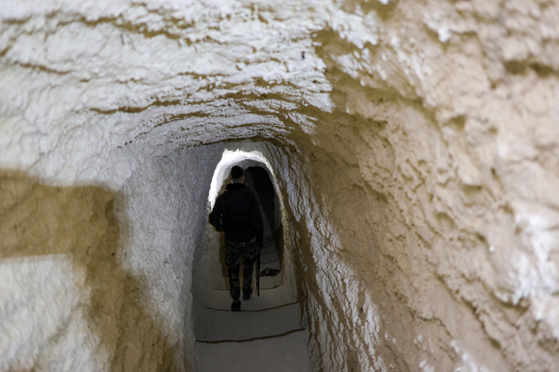 Anadolu Ajansı (AA) ekibinin görüntülediği Tel Susin köyündeki çimento fabrikasında tespit edilen tünelin birbirine bağlı birçok bölmesi bulunuyor.