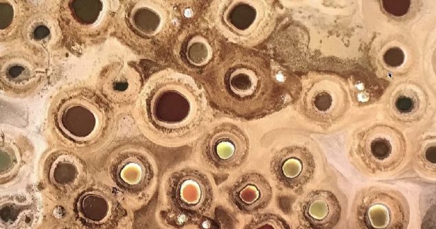 Her tarafına meteor düşmüş gibi görülen alandaki siyah, yeşil, turuncu, sarı, mavi, kırmızı veya beyaz sularla dolu koniye benzer yüzlerce kuyu, yerel halk tarafından tuz üretme kaynağı olarak kullanılıyor.