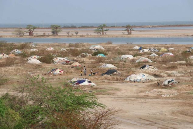 Başkent Dakar'ın 135 kilometre güneyinde yer alan ve önceden adayken gelgit olaylarıyla zamanla yarımadaya dönüşen Palmarin'de, deniz suyunun çekildiği kısımlarda bölge halkı tuz çıkarıyor.