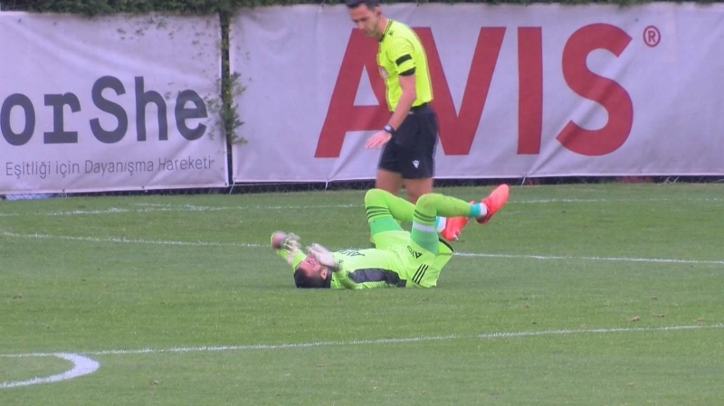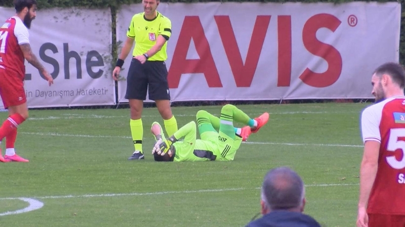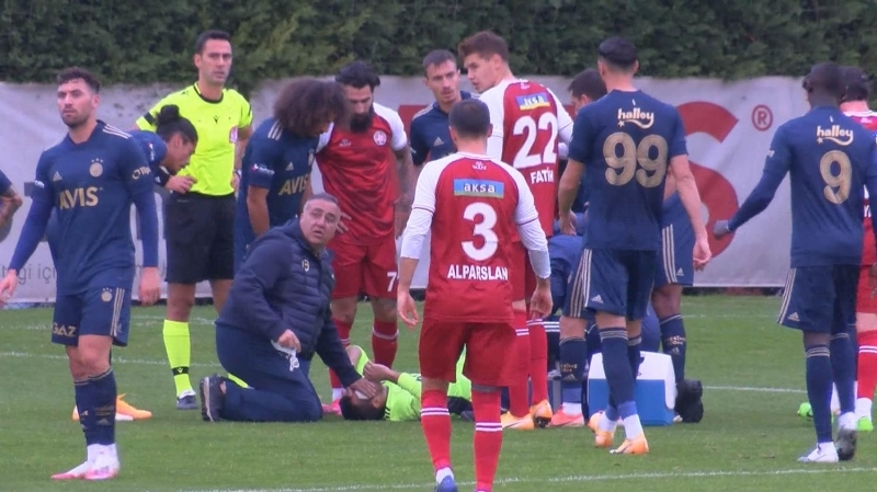 Deneyimli kaleci daha sonra ambulansla hastaneye kaldırıldı.