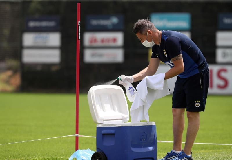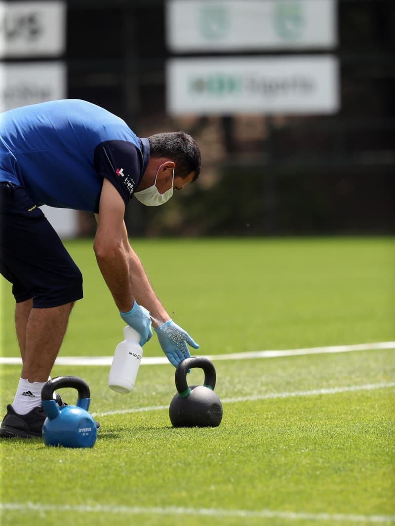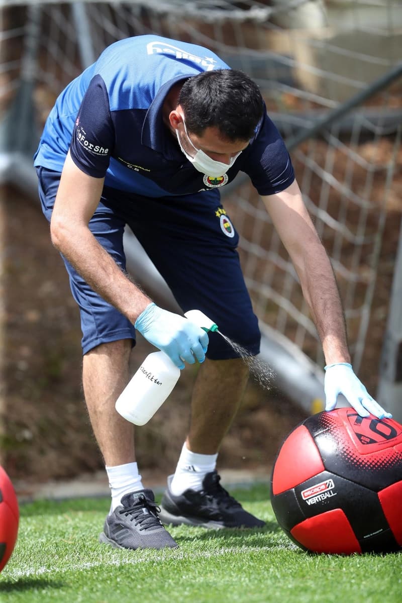Sarı lacivertli futbolcuların kullandıkları malzemelerin sık sık dezenfekte edilmesi dikkat çekti.
