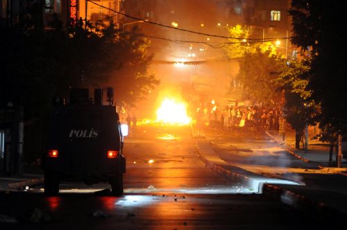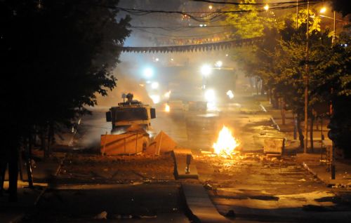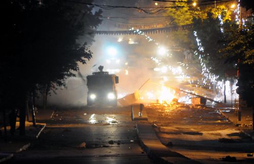 Müdahale sırasında ara sokaklardan silah sesleri duyuldu. TOMA aracı göstericilerin oluşturduğu bariyeri yıktığı sırada, tekerlerine dolanan çelik teller nedeniyle arızalandı. Bunun üzerine olay yerine itfaiye ekipleri çağrıldı. Gelen itfaiye ekipleri TOMA'nın lastiğine dolanan çelik telleri kesti. Yaklaşık 5 saat süren olaylar, göstericilerin dağılmasıyla son buldu.