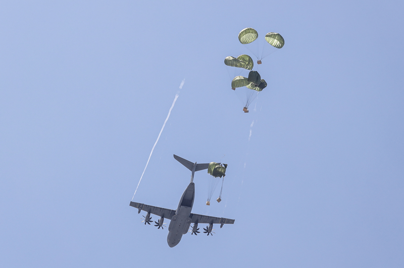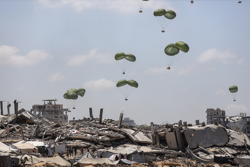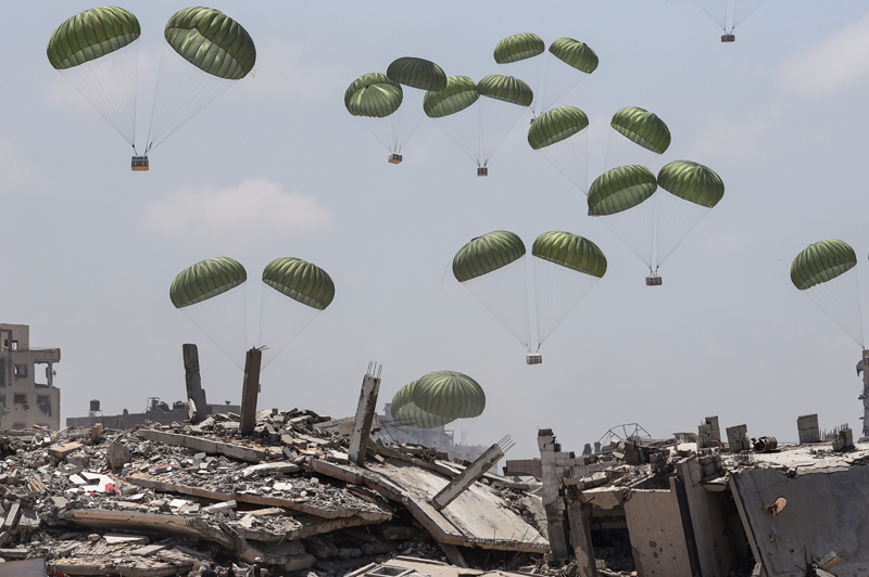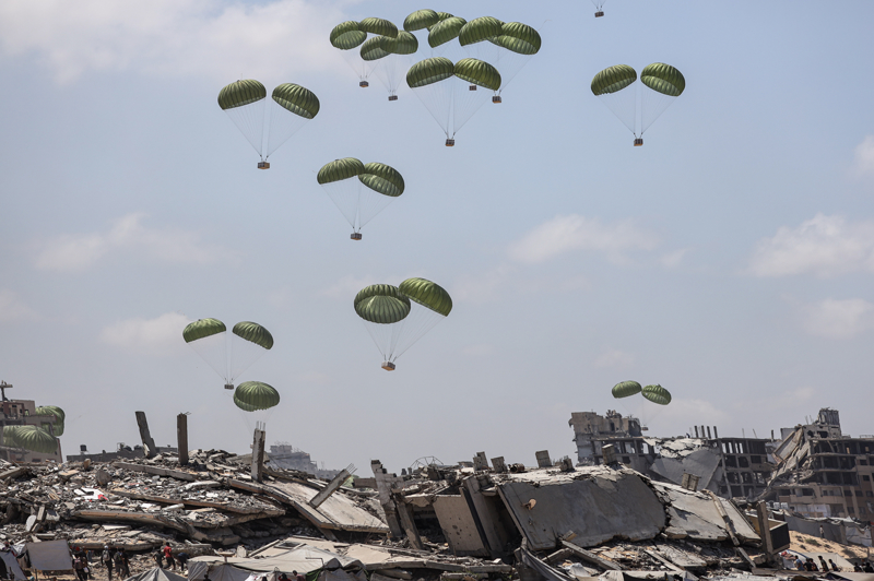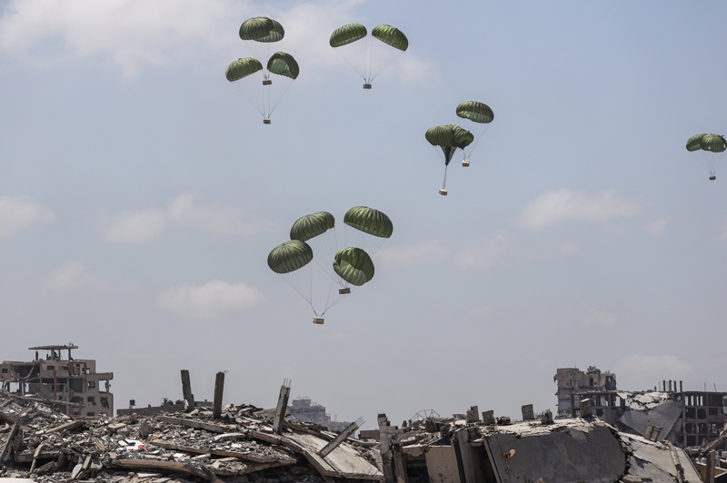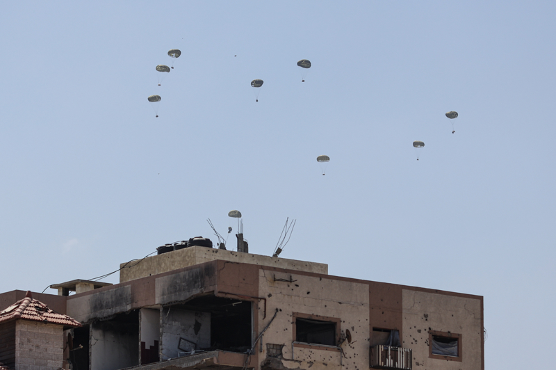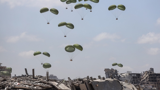 İsrail'in saldırısı ve ambargosu altındaki Gazze Şeridi'ne havadan paraşütle insani yardım malzemesi indirme girişimleri devam ediyor. Uçaklar, Gazze kentinin kuzey kesimine paraşütle havadan yardım indirdi.