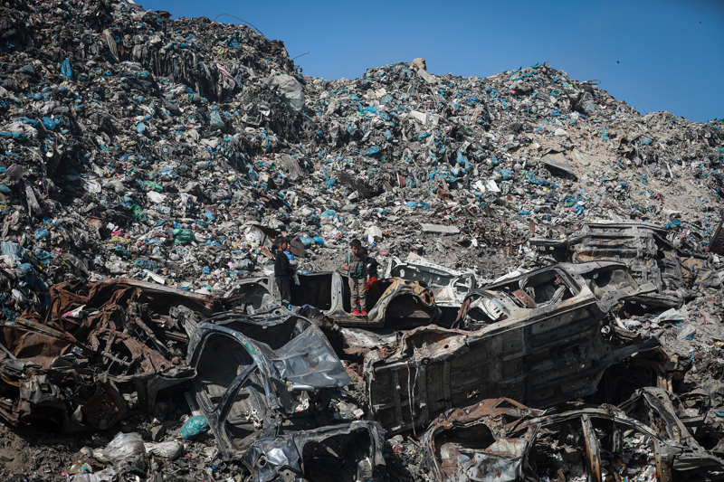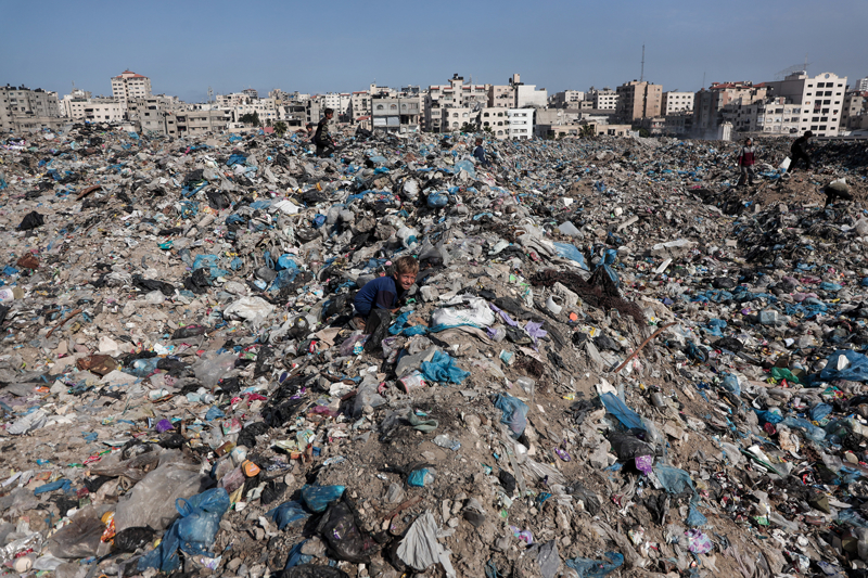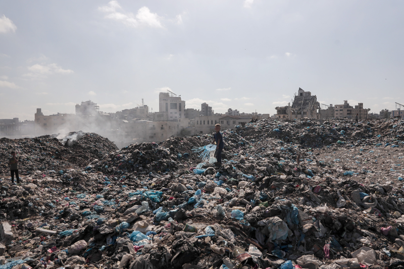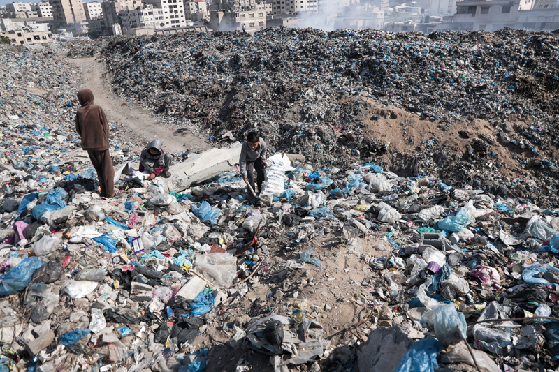 İsrail'in Gazze Şeridi'ne yönelik saldırıları, bölgedeki altyapıyı tamamen tahrip ederken belediye hizmetlerini de durma noktasına getirdi. Ekipman yetersizliği nedeniyle atık toplama faaliyetlerinin aksaması, Gazze kentinde devasa çöp yığınlarının oluşmasına yol açtı.