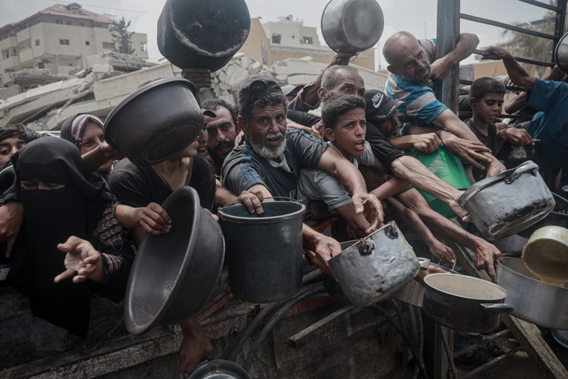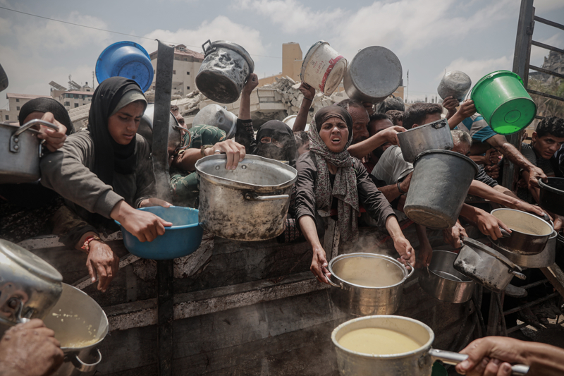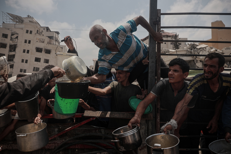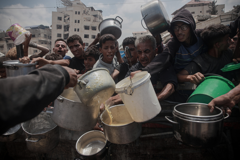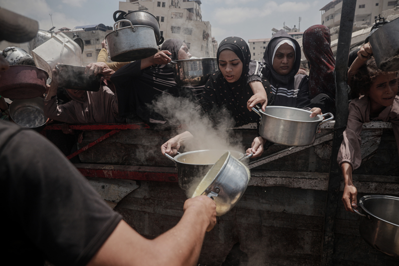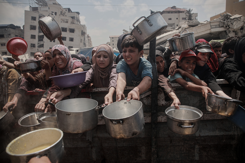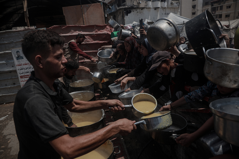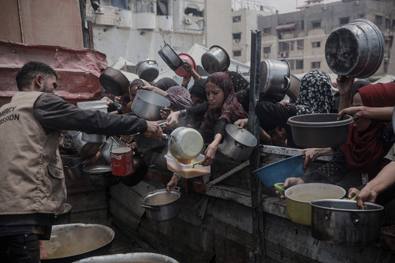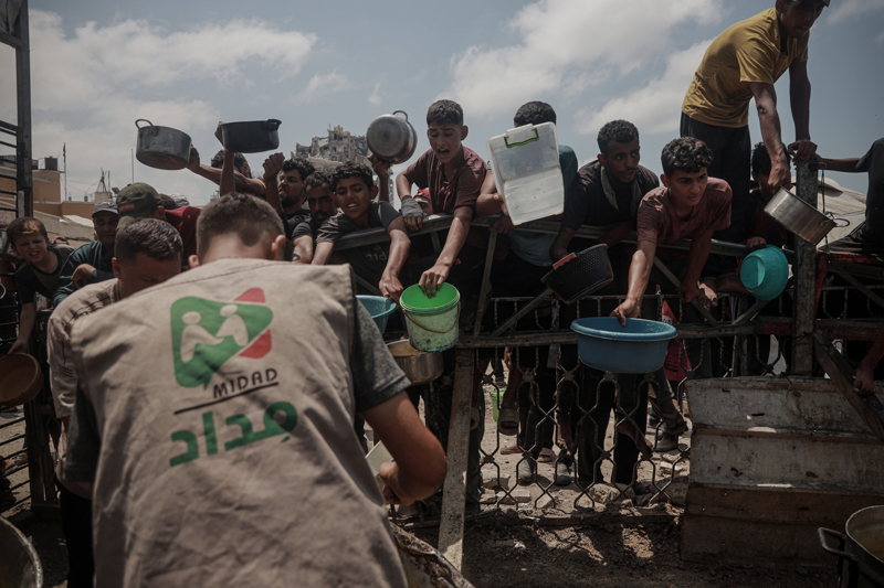 Gazze'de açlıkla mücadele eden Filistinlilere yemek dağıtıldı.