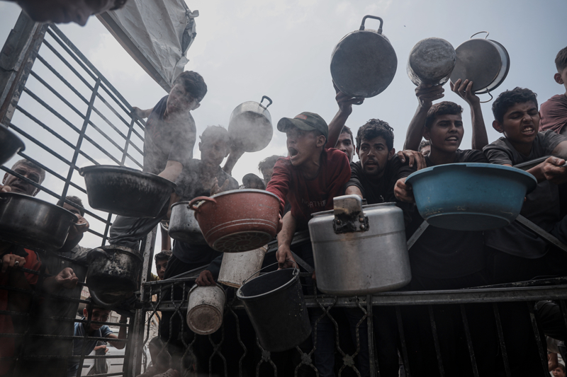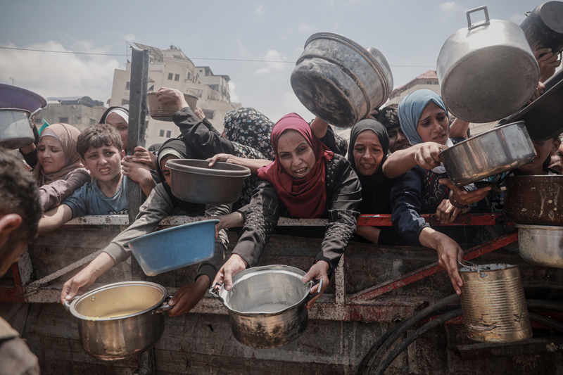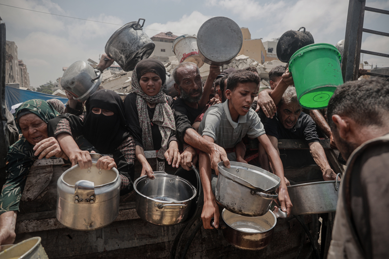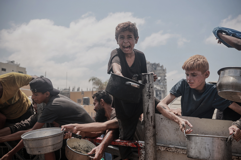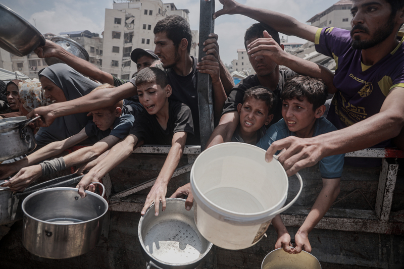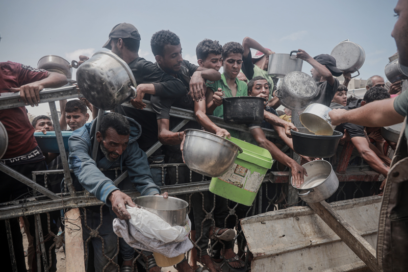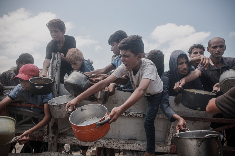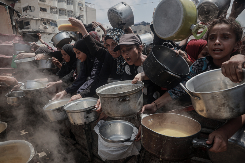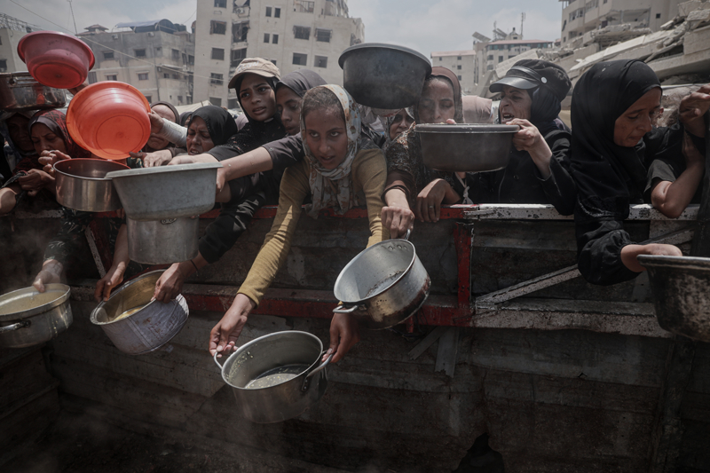 Gazze'de açlıkla mücadele eden Filistinlilere yemek dağıtıldı.