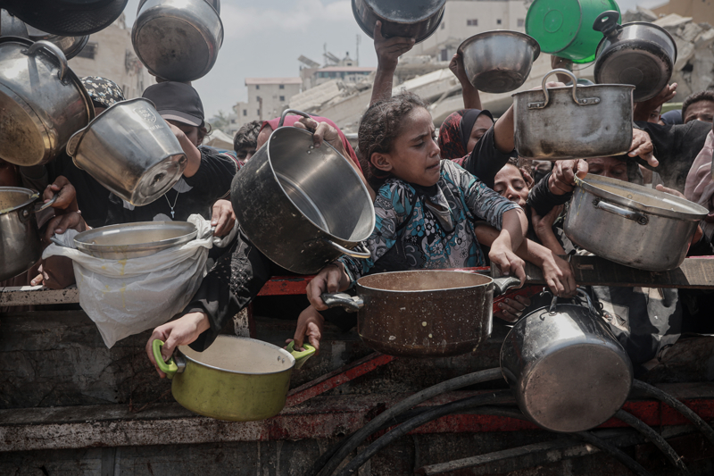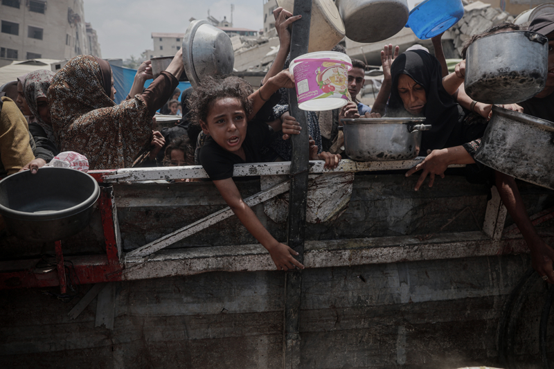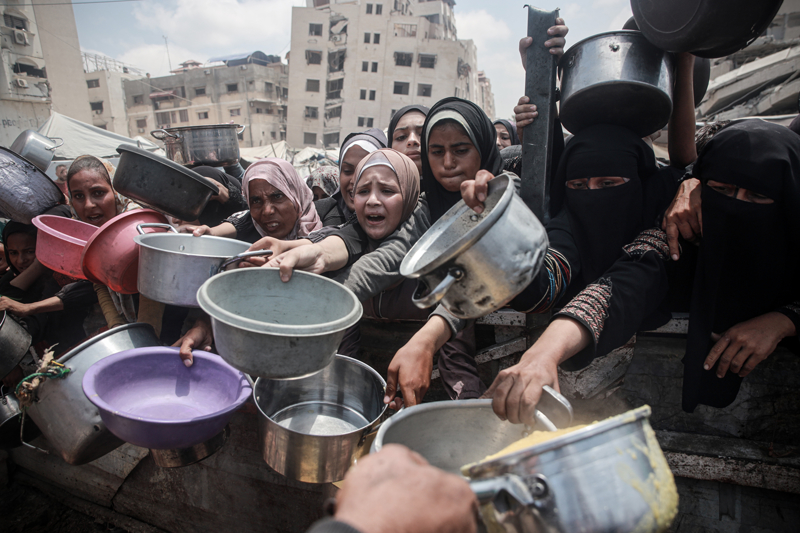 İsrail'in Gazze Şeridi'ne uyguladığı abluka ve devam eden saldırılar nedeniyle gıdaya erişimde zorluk yaşayan Filistinlilere, bir hayır kurumu tarafından yemek dağıtımı yapıldı. Gazze kentinin batısındaki gerçekleşen dağıtım sırasında yoğunluk oluştu.