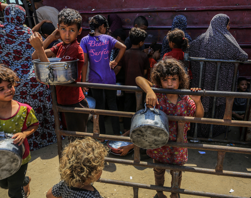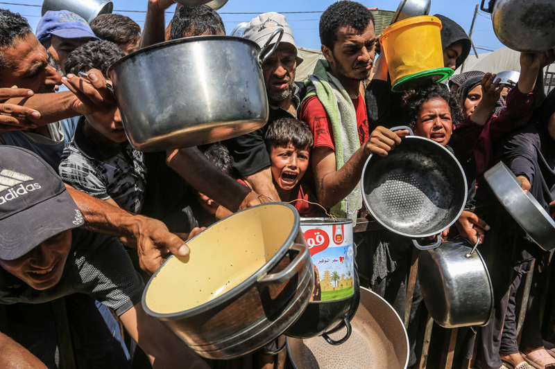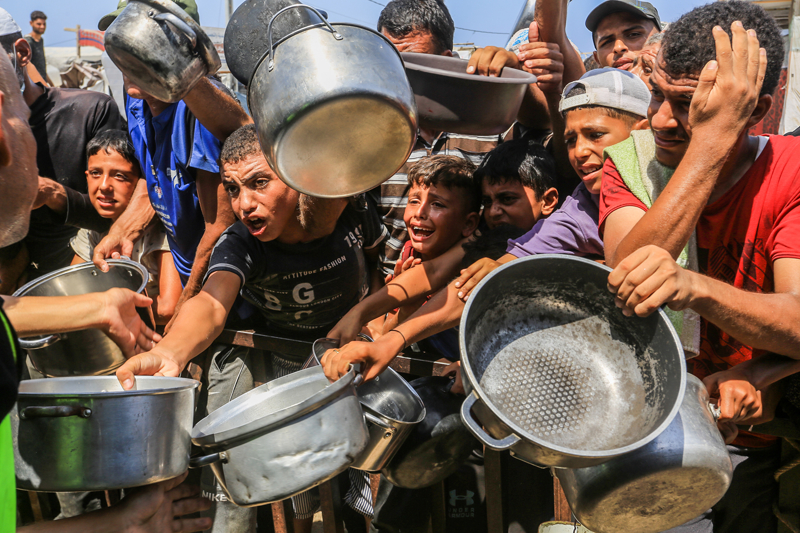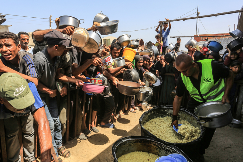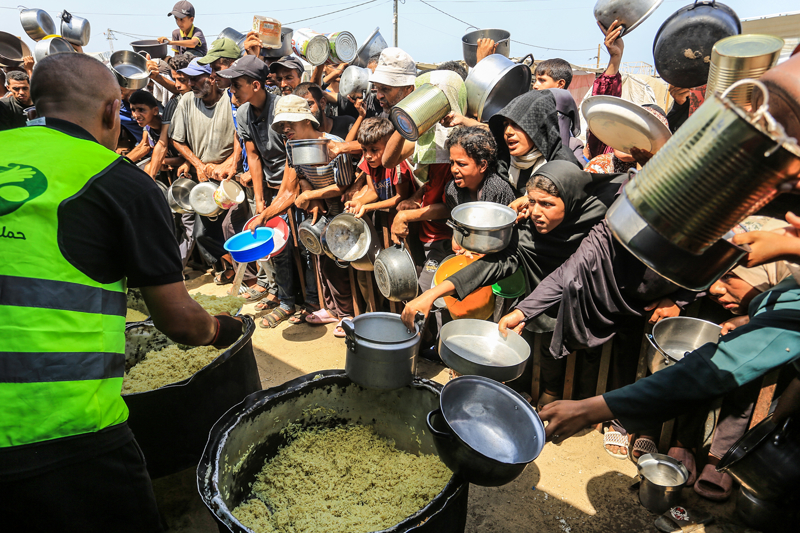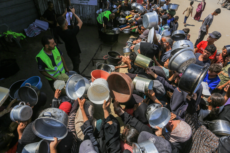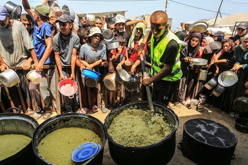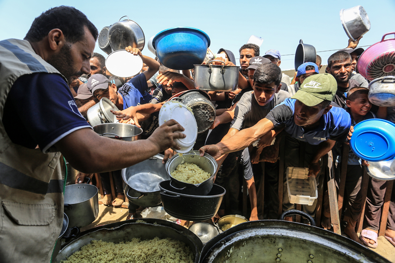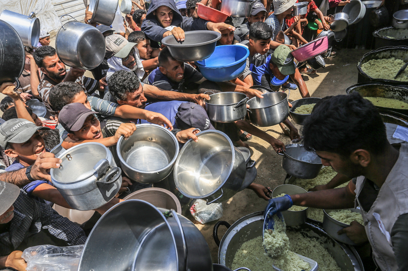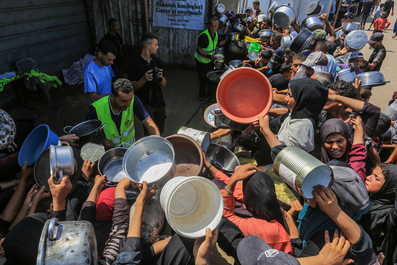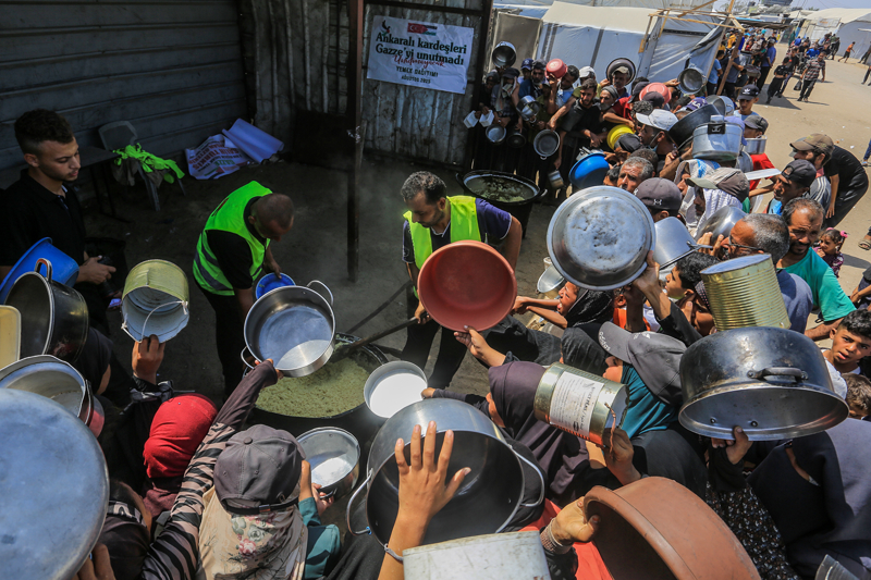 Gazze'de açlıkla mücadele eden Filistinlilere yemek dağıtıldı.