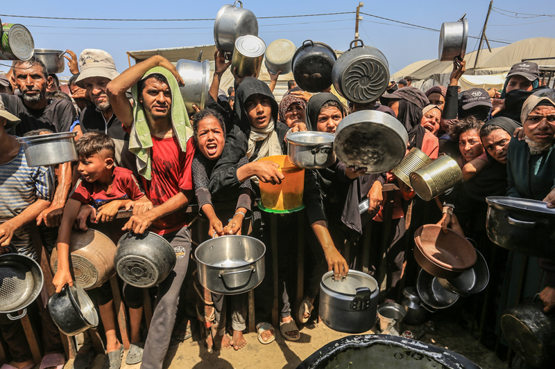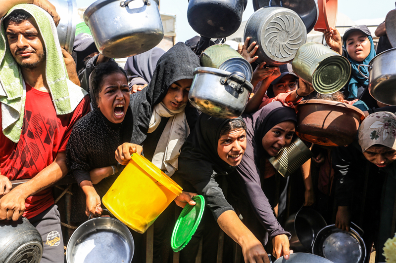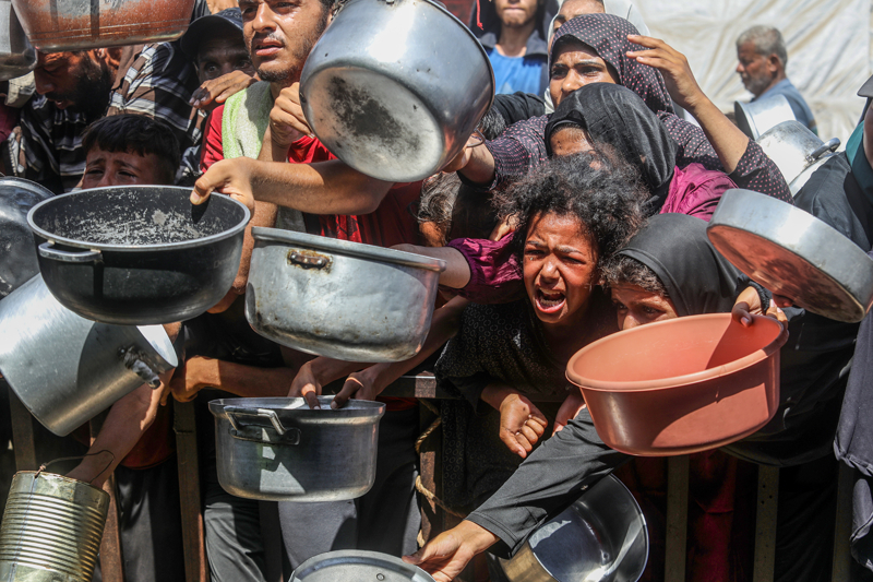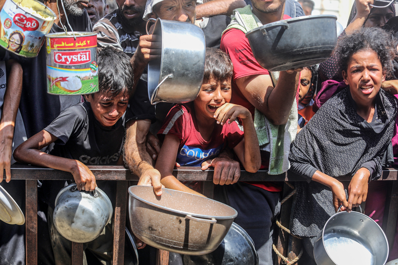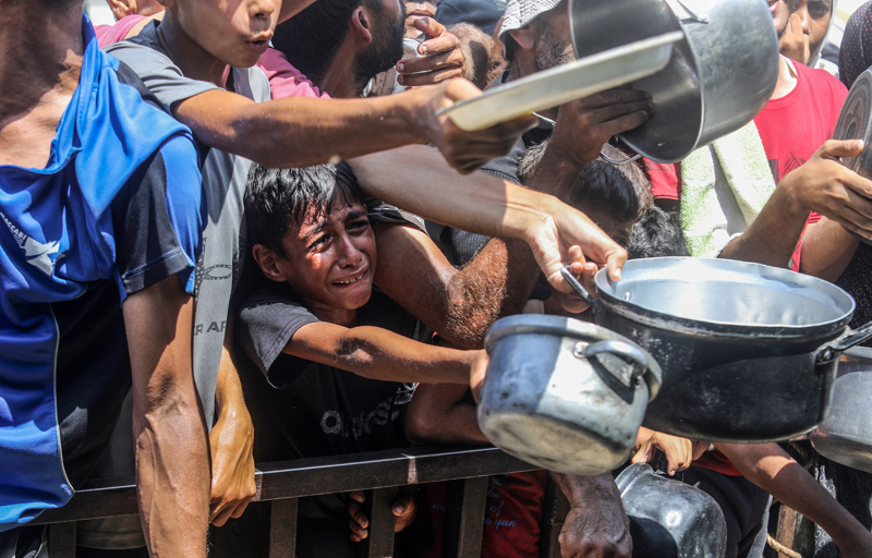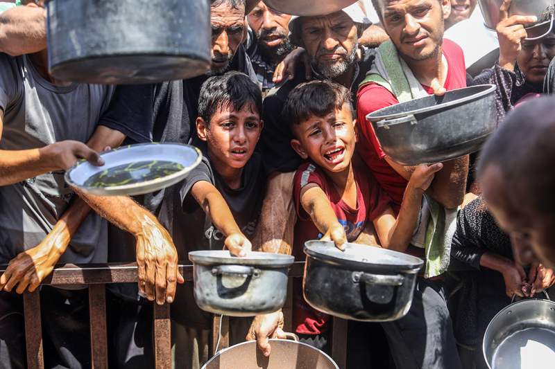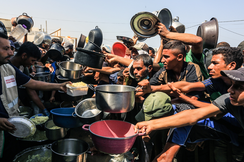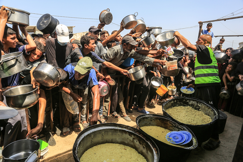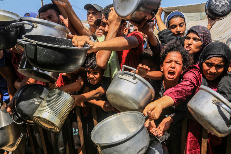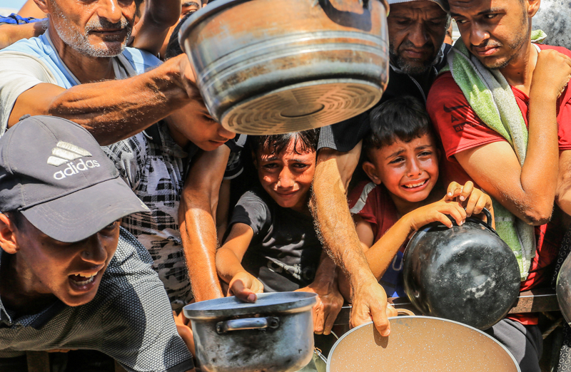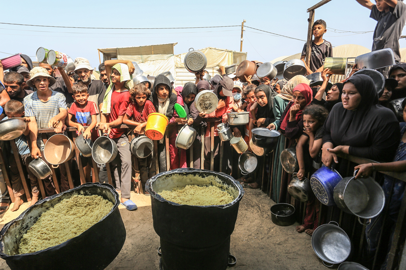 Gazze'de açlıkla mücadele eden Filistinlilere yemek dağıtıldı.