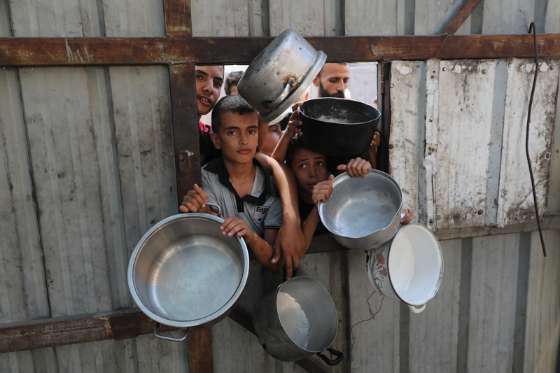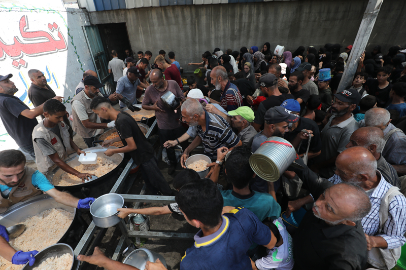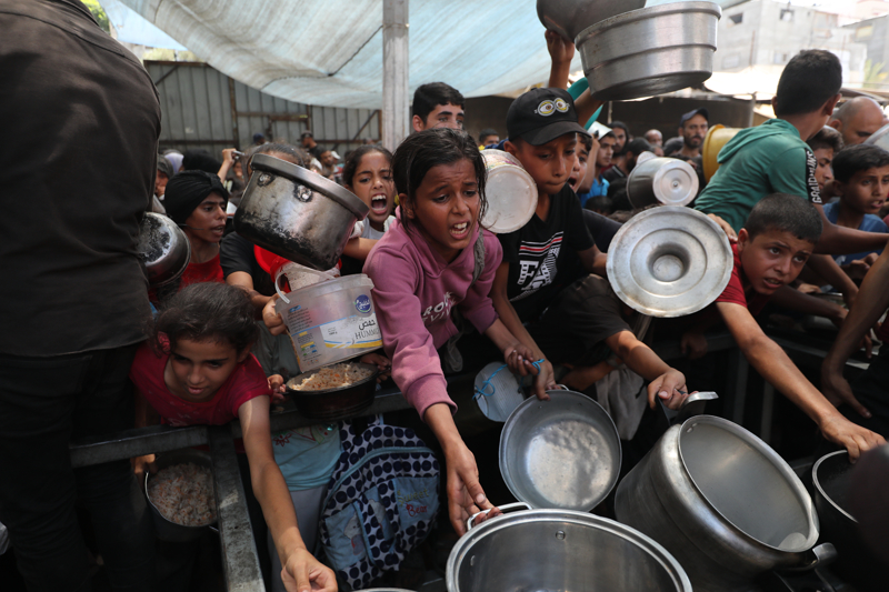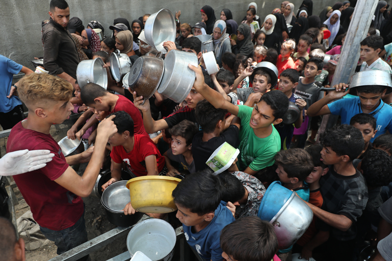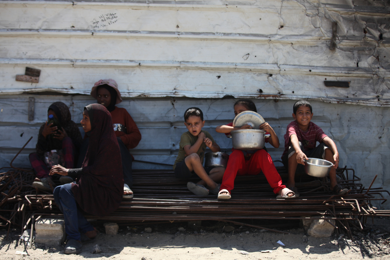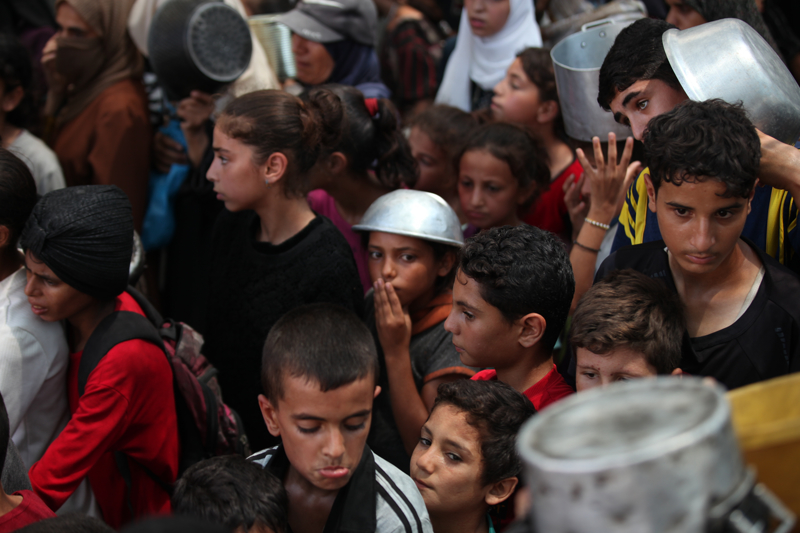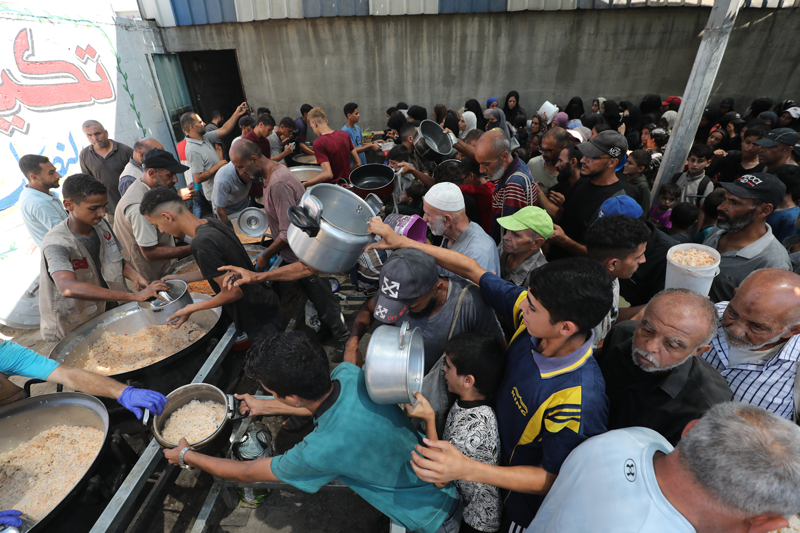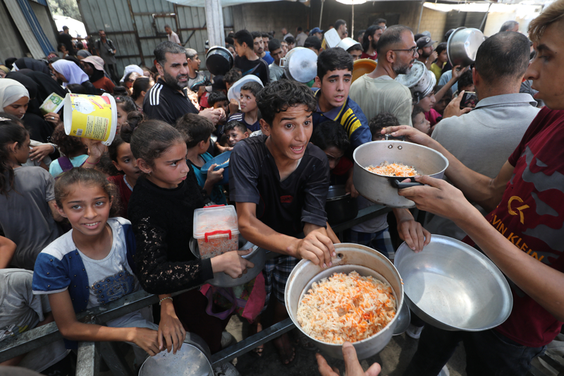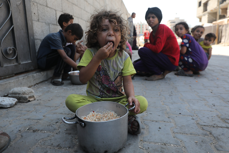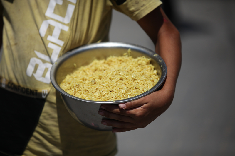 Gazze'de açlıkla mücadele eden Filistinlilere yemek dağıtıldı.