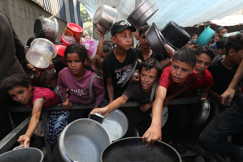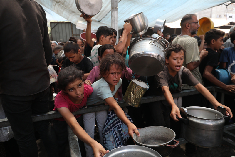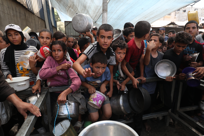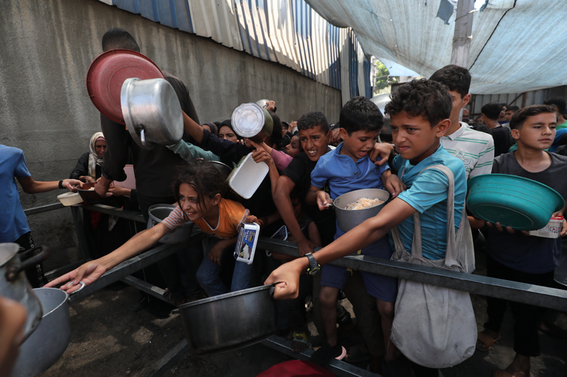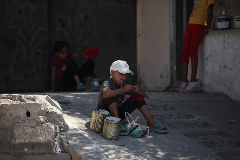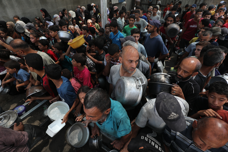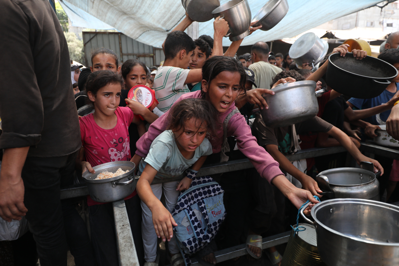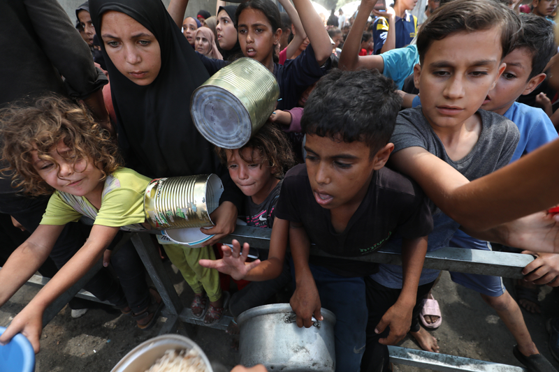 İsrail'in Gazze Şeridi'ne yönelik ablukası ve derinleşen açlık krizi nedeniyle gıdaya erişimde zorluk yaşayan Filistinlilere, Gazze Şeridi'nin orta kesiminde yer alan Nuseyrat Mülteci Kampı'nda sıcak yemek dağıtımı yapıldı.