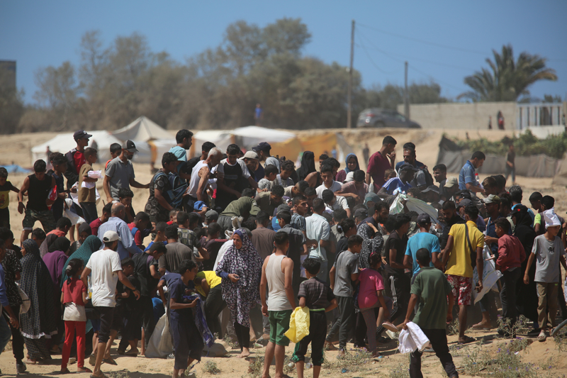 İsrail'in açlığa mahkum ettiği Gazze Şeridi'nin Deyr Belah kentindeki ez-Zevaide bölgesine havadan paraşütle yardım indirildi.