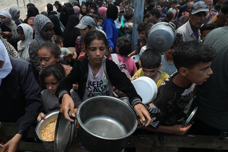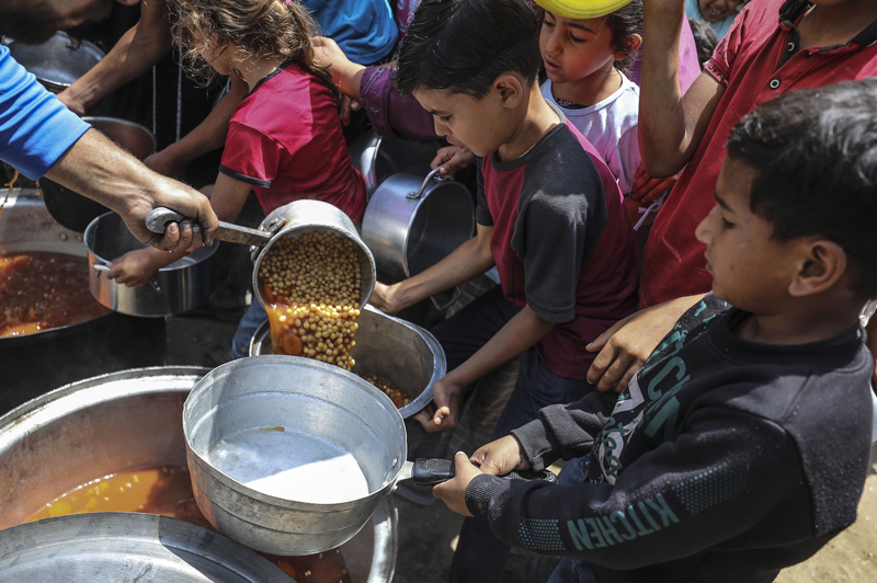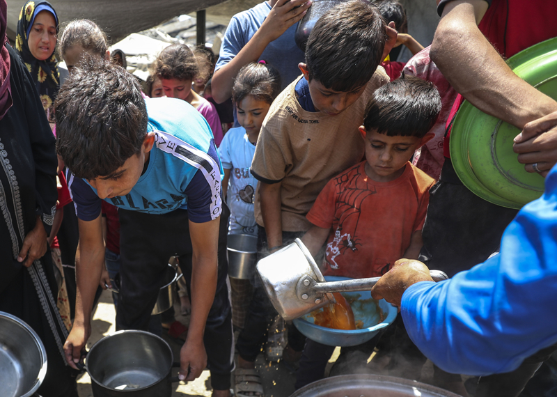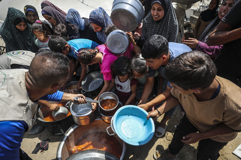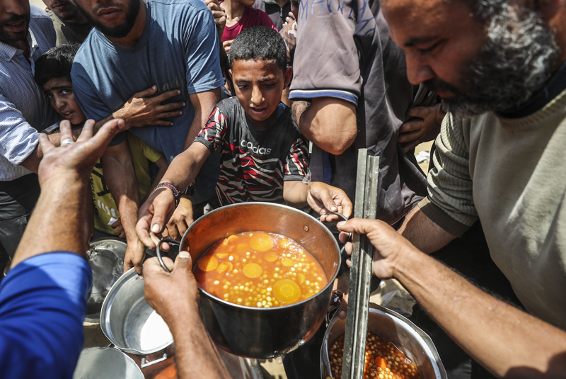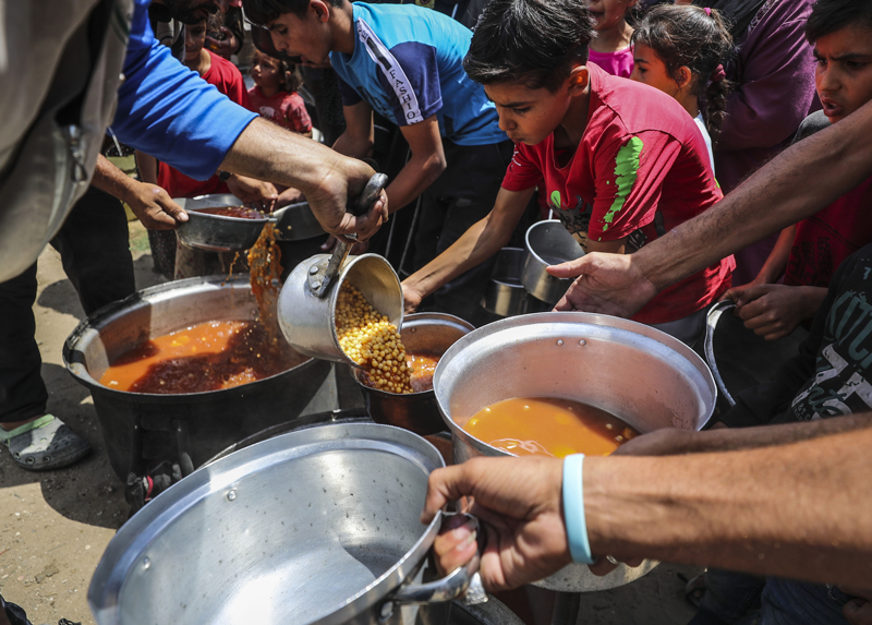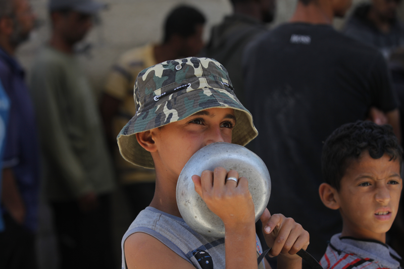 İsrail'in abluka altındaki Gazze Şeridi'ne yönelik acımasız ve yıkıcı saldırıları aralıksız sürerken, uygulanan tam ambargo nedeniyle bölgede derinleşen 'insani kriz' devam ediyor. Gazze kentindeki Filistinlilere hayır kurumları tarafından yemek dağıtımı yapıldı. Yemek alabilmek için aralarında çocukların da bulunduğu çok sayıda Filistinli, izdiham oluşturdu.