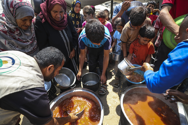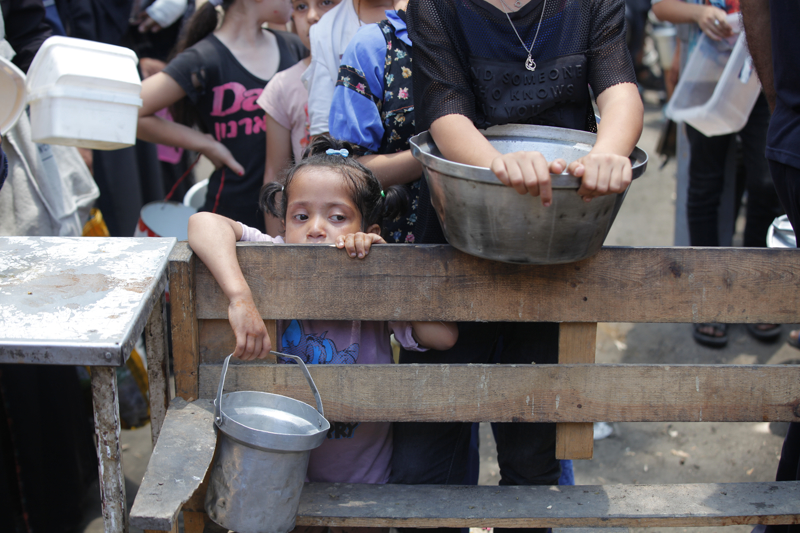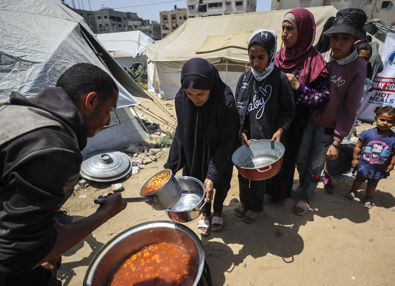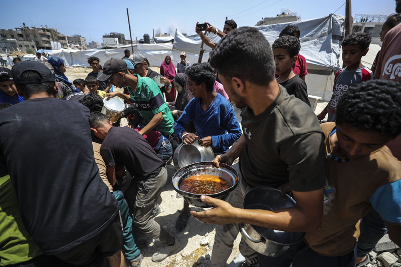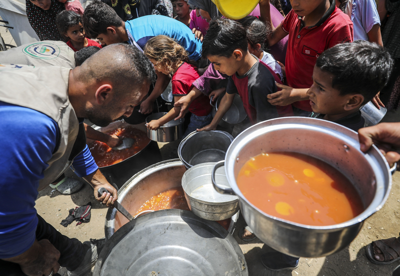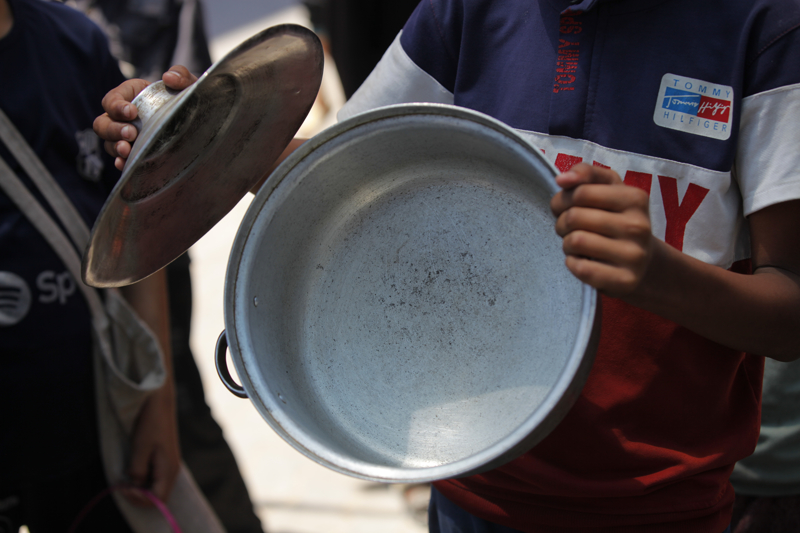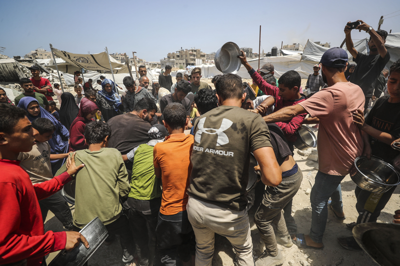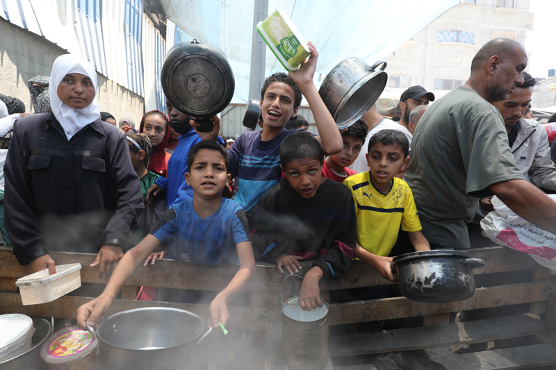 İsrail'in abluka altındaki Gazze Şeridi'ne yönelik acımasız ve yıkıcı saldırıları aralıksız sürerken, uygulanan tam ambargo nedeniyle bölgede derinleşen 'insani kriz' devam ediyor. Gazze kentindeki Filistinlilere hayır kurumları tarafından yemek dağıtımı yapıldı. Yemek alabilmek için aralarında çocukların da bulunduğu çok sayıda Filistinli, izdiham oluşturdu.