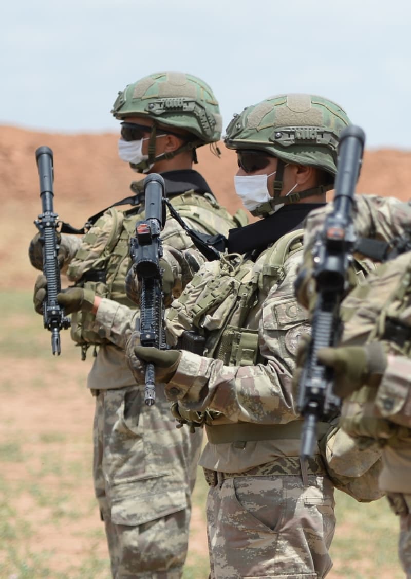 Devriye ve keşif görevlerinin icra edildiği üs bölgelerinde milli piyade ve keskin nişancı tüfeği gibi yerli silahlarla donatılan Mehmetçik, sızma ve saldırı girişimlerine karşı gece gündüz her an teyakkuzda.