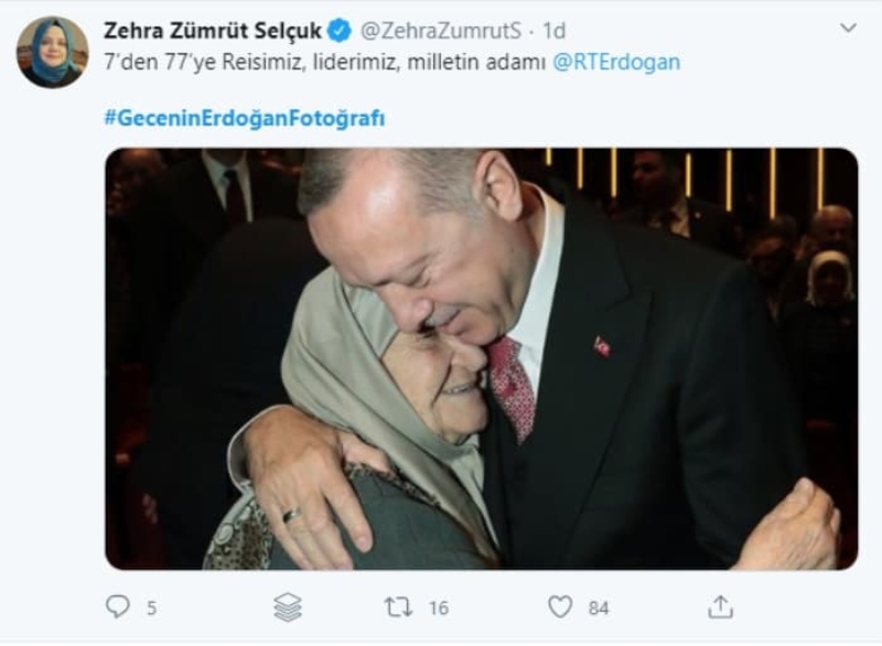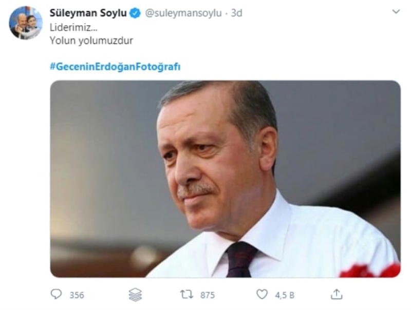 Sosyal medya kullanıcılarının yanı sıra Cumhurbaşkanlığı resmi hesabı da '#GeceninErdoğanFotoğrafı' hastagi altında paylaşımda bulundu.