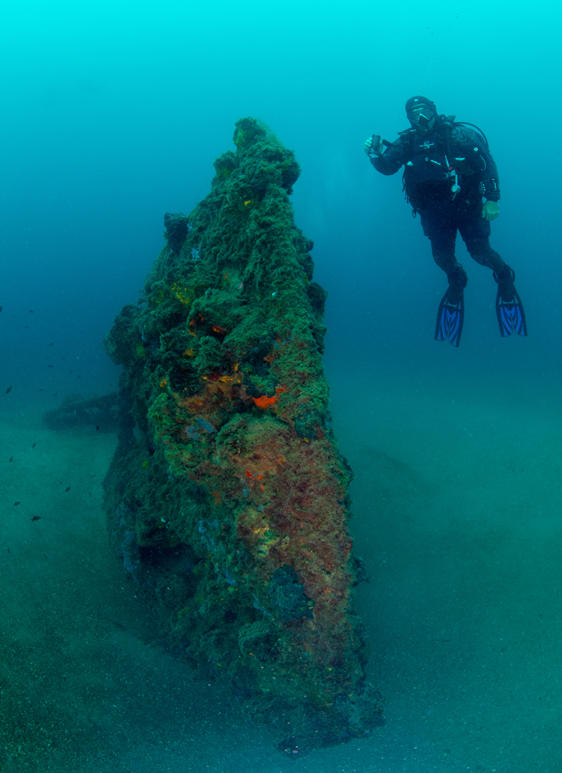 Büyük Kemikli Burnu'nda 14 metre derinlikte bulunan batık, bugün balık ve canlı çeşitliliğinin kusursuz fotoğraflanabileceği önemli bir su altı dalış noktası haline geldi.