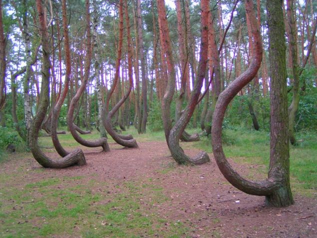 Polonya’nın kuzeybatısında yer alan Crooked Ormanı, yaklaşık 400 çam ağacından oluşuyor.