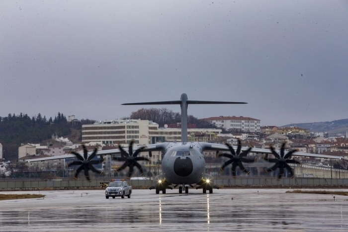 ayseri 12. Hava Ulaştırma Ana Üs Komutanlığından kalkan "Koca Yusuf" adlı ambulansa dönüştürülen Türk Hava Kuvvetlerine ait A400M kargo uçağı, sağlık ekipleri ve ekipmanı aldıktan sonra Çin'e hareket edecek.