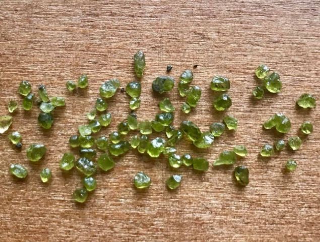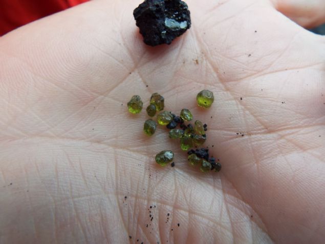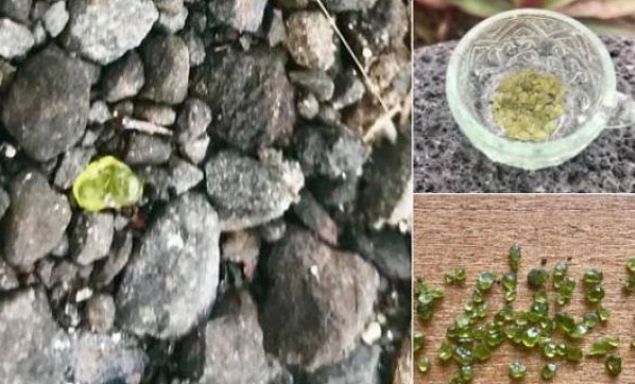 Yanardağın patlamasının ardından çevreye yağan kül püskürtülerini irdeleyen bölge sakinleri, taşlaşmış lavların arasında yeşil renkli, şeffaf ve minik parçalara rastladı.