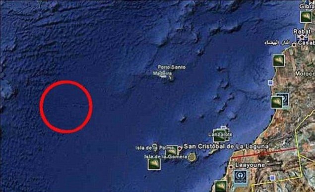 YouTube'a yüklenen bir videoda, Fas açıklarındaki Madeira denizaltı havzası olarak bilinen yerin üzerinden çekilen uydu görüntülerinde, köşeleri belirgin bir şekil görülüyor.