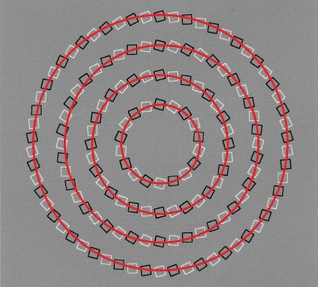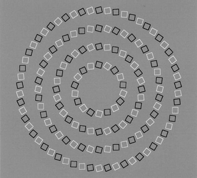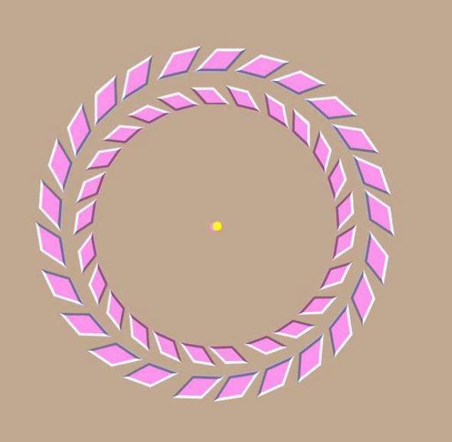 Bir süre sarı noktaya odaklanın. Daha sonra başınızı ekrana yaklaştırdığınızda pembe dörtgenler dönmeye başlayacaklar, ekrandan uzaklaştırdığınızda ise ters yöne hareket edecekler.