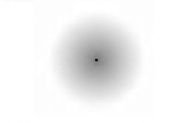 Yine yaklaşık bir karış veya biraz daha uzak bir mesafeden siyah noktaya odaklanın. Bir süre sonra gri puslu kısım yok olacak.