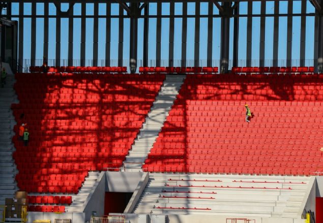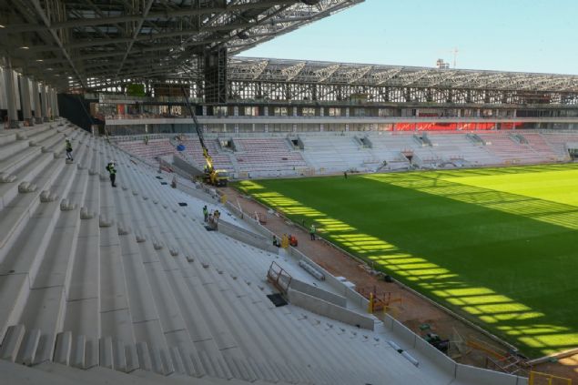 Süper Lig ekiplerinden Göztepe'nin yeni stadı Gürsel Aksel Spor ve Sağlıklı Yaşam Merkezi'nin yapımı devam ediyor. İşte kare kare stadın son durumu...