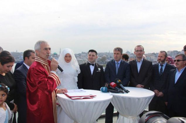 Metro İstasyonu seyir terasında gerçekleştirilen törende nikahı Kağıthane Belediye Başkanı Fazlı Kılıç kıydı. Çiftin nikah şahitliklerini ise Metro İstanbul Genel Müdürü Kasım Mutlu ile Ak Parti Sarıyer İlçe Başkanı Salih Bayraktar yaptı.