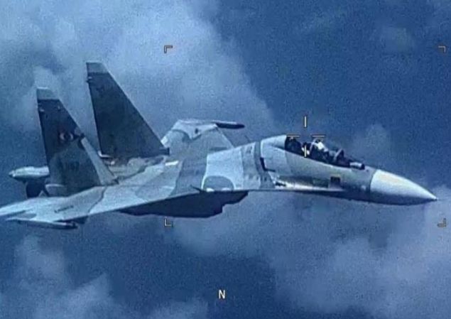 ABD uçağı, bir anda karşısına çıkan Su-30 savaş uçağını fark etti.