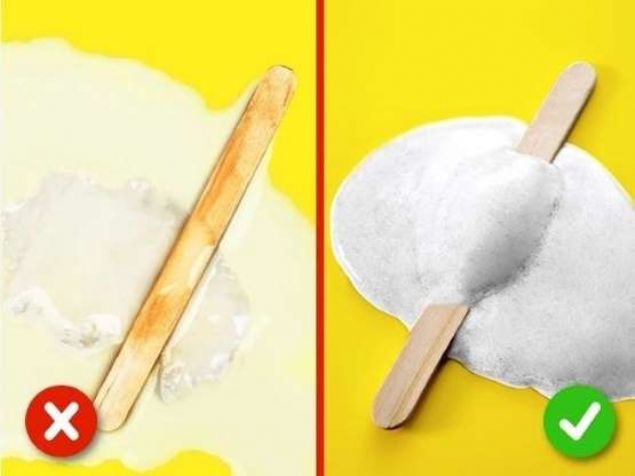 Kaliteli malzemelerle yapılmış dondurma, kalın, beyaz kremsi bir madde haline dönüşür.