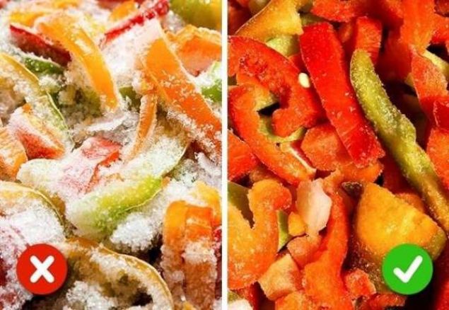 Dondurulmuş bir paketde kar veya buz parçası olup olmadığını kontrol edin.Varsa, düzgün bir şekilde saklanmaz. Üzerinde donmuş olan ürünleri seçin.