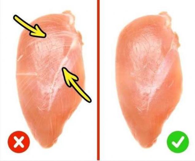Tavuk göğüsü tüketmeden önce üzerindeki beyaz çizgilere ve kalın katı yağlara dikkat edin. Bu, çiftçilerin kümes hayvanlarına büyüme hormonu enjekte ettiği ve tavukların ağırlığı çok hızlı bir şekilde arttığı anlamına geliyor.Bu et sağlık için iyi değil.