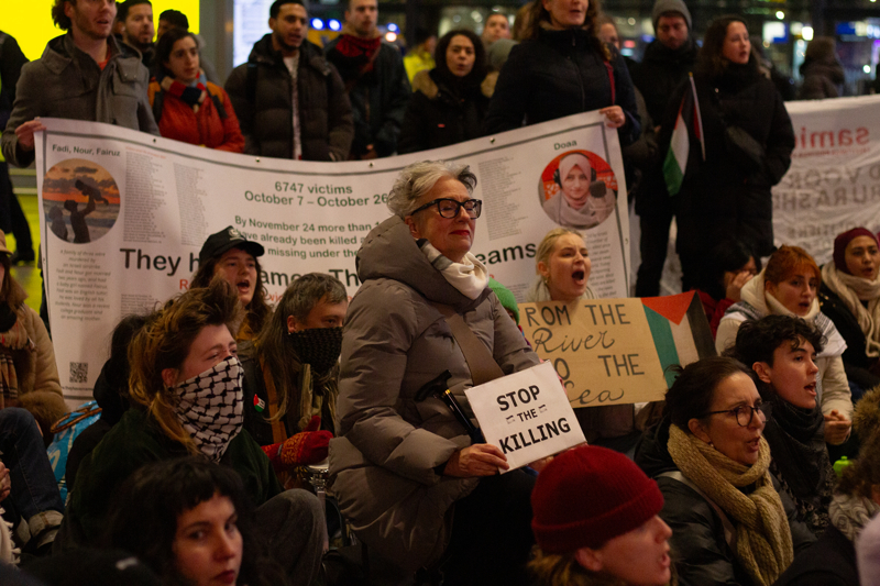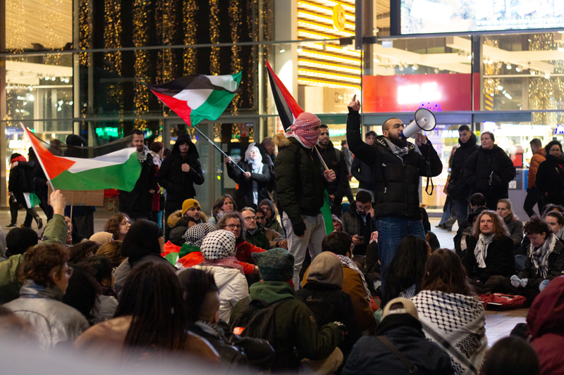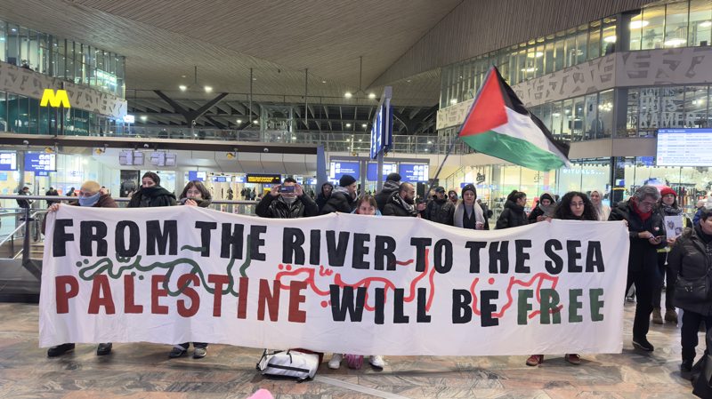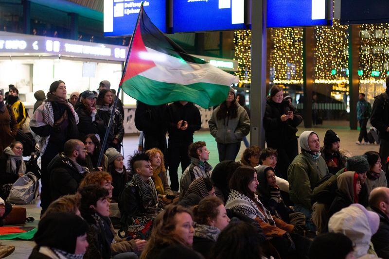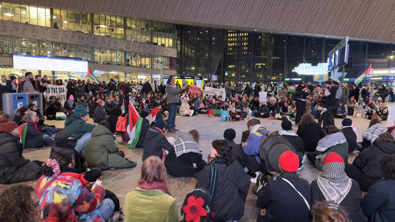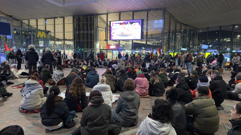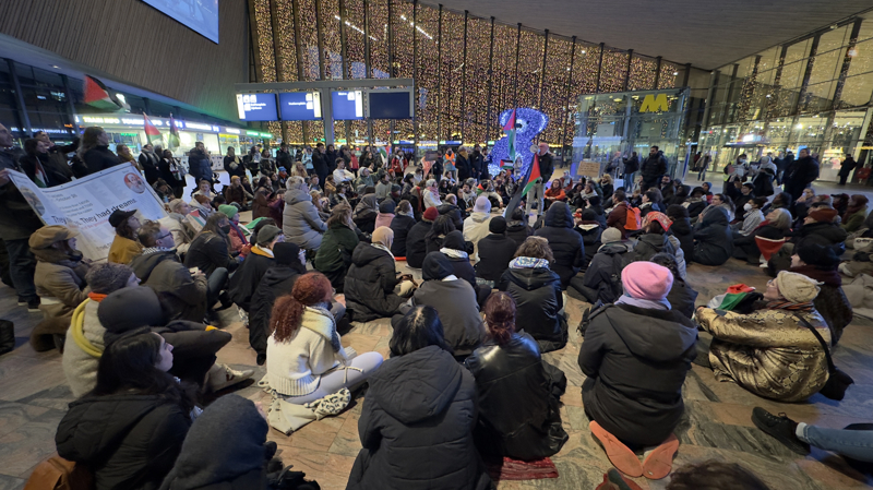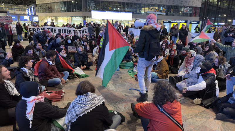 Hollanda'nın farklı kentlerinde toplam 13 tren istasyonunda, Filistin'e destek için oturma eylemleri düzenlendi. Ülkenin en büyük kentlerinden Rotterdam'da merkez tren istasyonunda toplanan göstericiler, Filistin bayrakları dalgalandırarak 'ateşkes' çağrısı yaptı.
