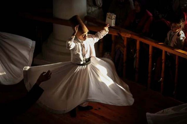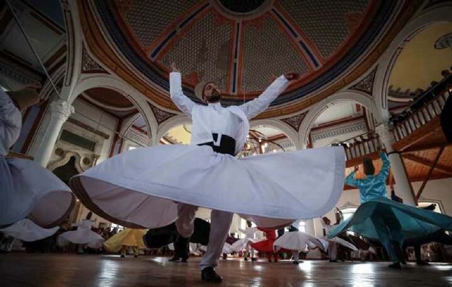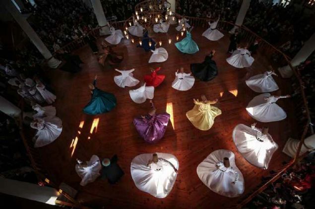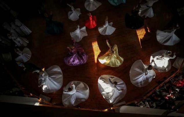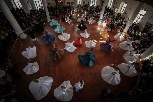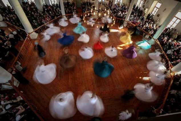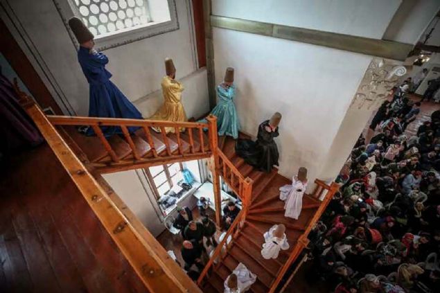 Semazenlerin farklı renklerdeki tennureleriyle yaptığı gösteri beğeniyle izlendi.