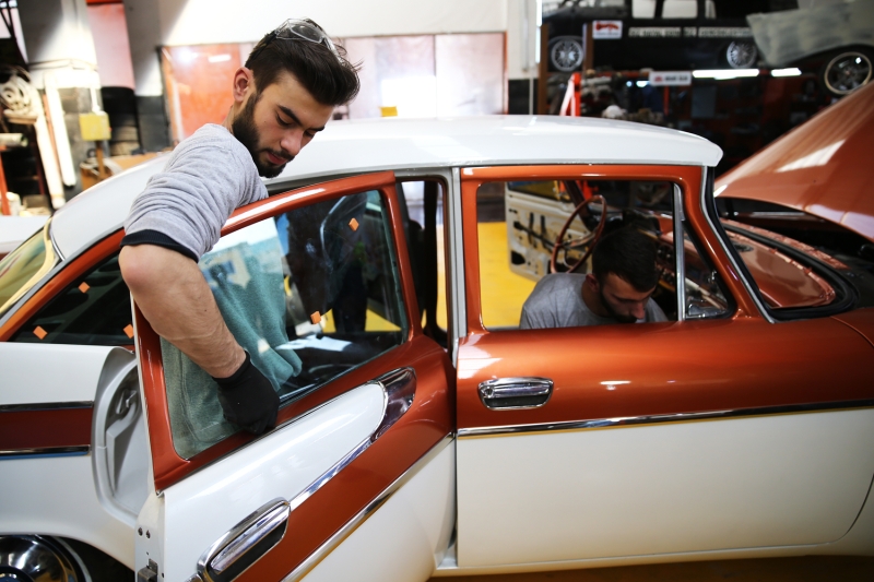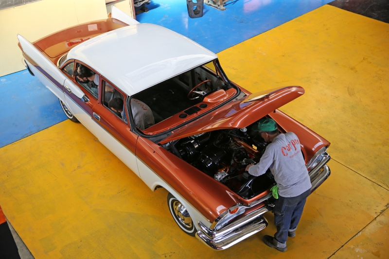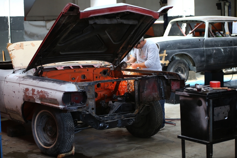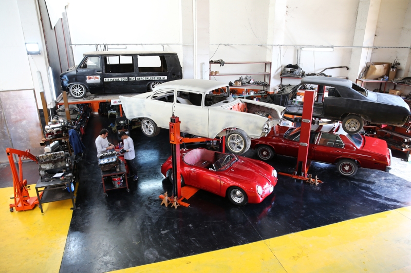 Merkezde 1957 Dodge Coronet'den 1965 model Ford Mustang'e, 1963 Cadillac Convertible'dan 1974 model Pontiac Trans Am modeline kadar birçok klasik araç, aslına uygun olarak restore ediliyor.