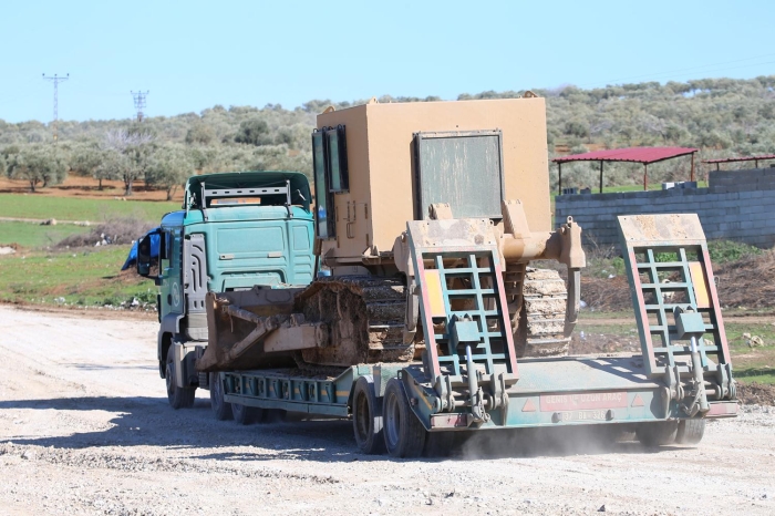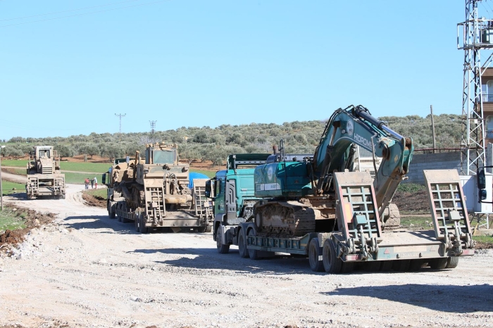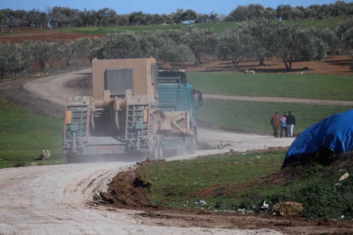 30 tırdan oluşan zırhlı iş makinesi konvoyu, geniş güvenlik önlemleri altında İdlib'deki gözlem noktalarına yönlendirildi.