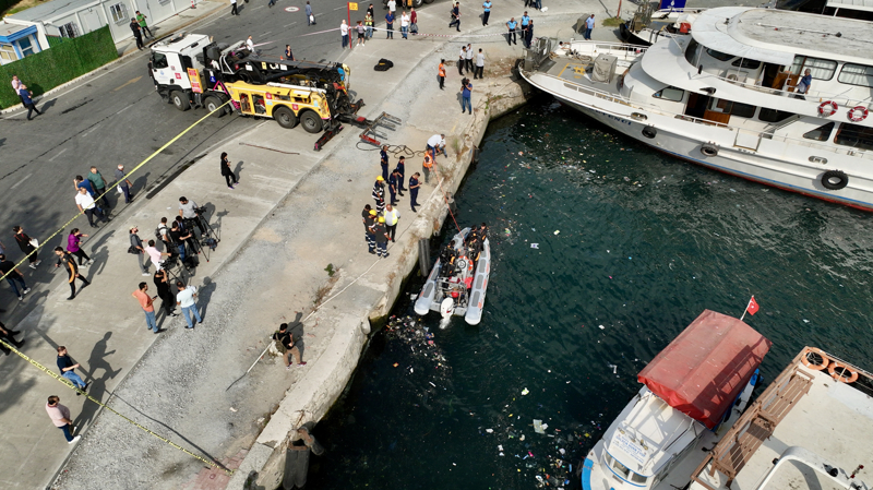 Konu ile ilgili İstanbul Valiliğinden yapılan yazılı açıklamada, ' Saat 08.09'da Emniyet haber merkezinden alınan bilgiye göre Fatih Eminönü Demirtaş Mahallesi Ragıp Gümüşpala Caddesi Eminönü İETT Garajı içerisinde park halinde bulunan EM1 hat numaralı boş ( Eminönü-Kulaksız) özel halk otobüsü el freni boşalarak denize düşmüştür. İtfaiye ekipleri, sahil güvenlik ve yol bakımdan 1 adet vinç olay yerindedir. Ölü ve yaralı yoktur' ifadelerine yer verildi.