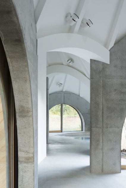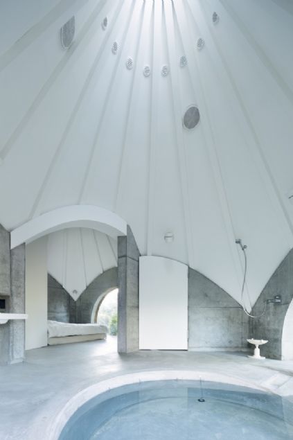 Bu evde merdiven yok, spiral şeklinde banyo tekerlekli sandalye için bir rampayla inşa edildi.