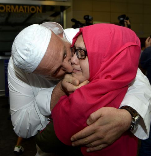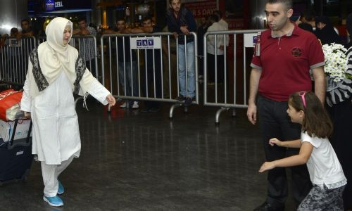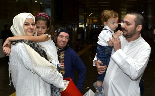Kutsal topraklardan İstanbul'a gelen hacılardan Mehmet Kürşad Caymaz ile Hande Caymaz, "Çok büyük mutluluk. Allah herkese nasip etsin. Daha önceden geçtiğimiz için izdihamı görmedik" dediler.