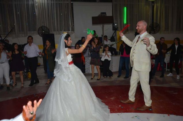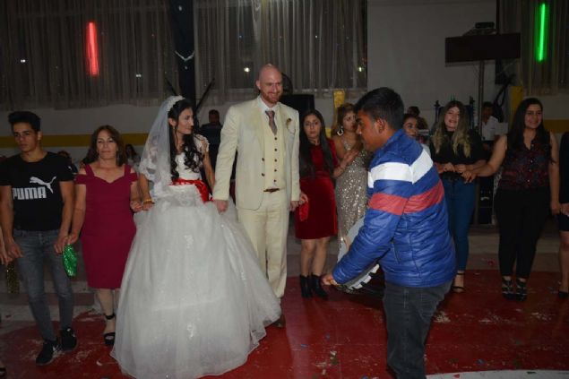 Türk geleneklerine uygun yapılan, halayların çekilip yöresel oyunların oynandığı düğünde İngiliz damadı, arkadaşları yalnız bırakmadı.