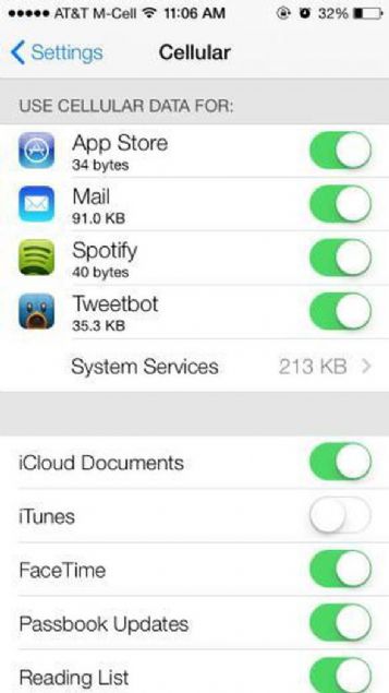 iOS 7'den önceki sürümler, uygulama bazında veri kısıtlaması olmadığı için sık sık eleştiriliyordu. Yeni işletim sistemiyle beraber istenmeyen uygulamaların veri çekmesi engellenebiliyor. Örneğin sadece 'Foursquare' uygulamasının veri kullanması kısıtlanabiliyor.