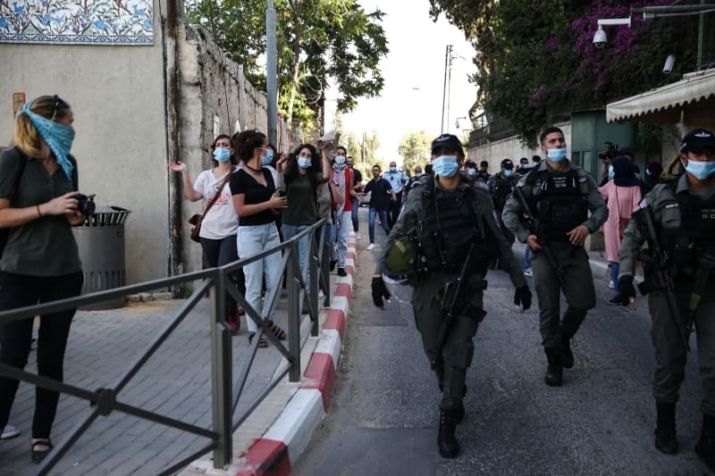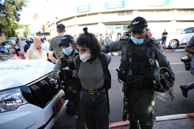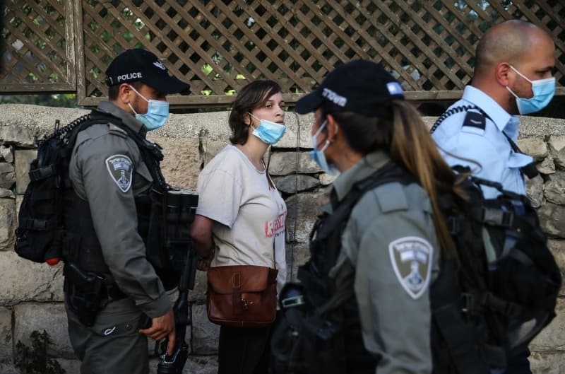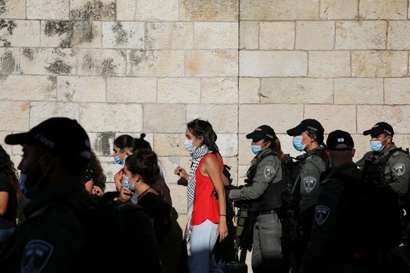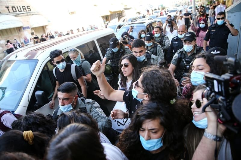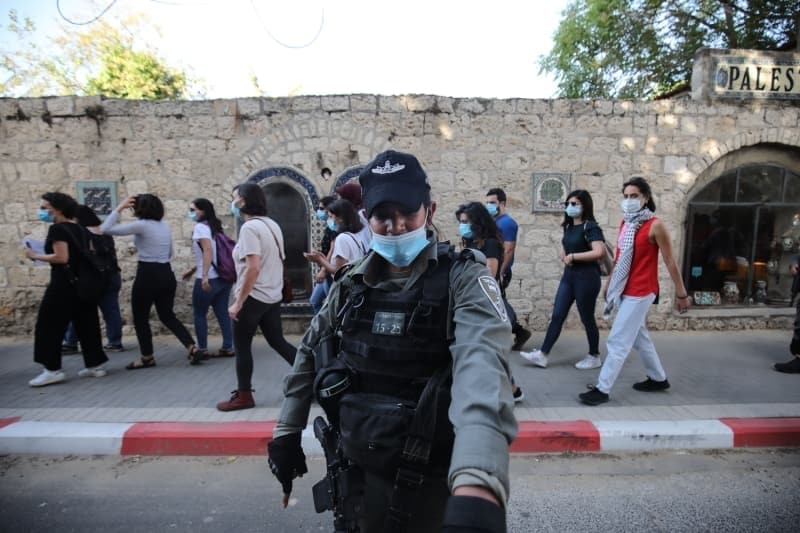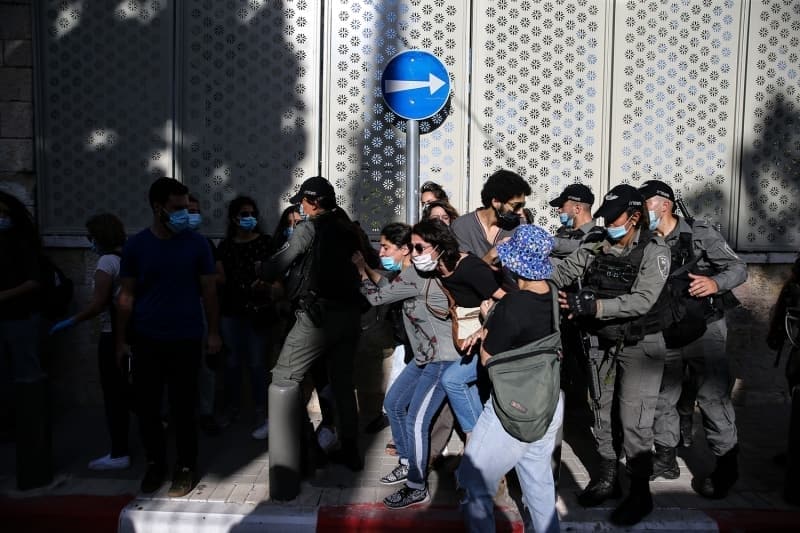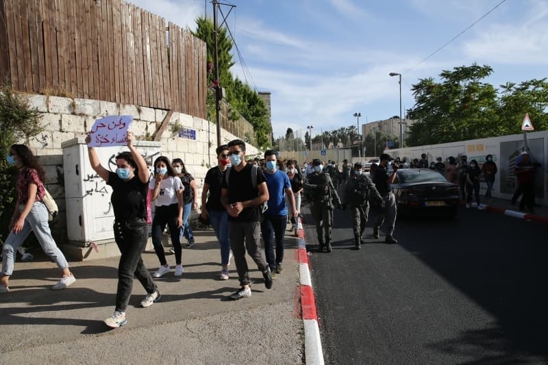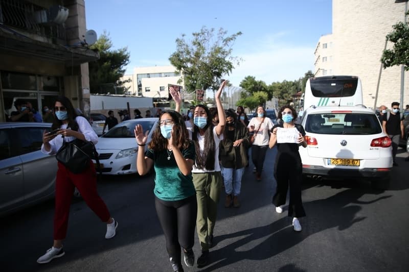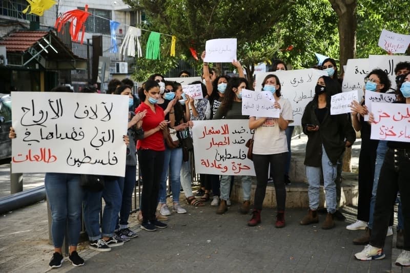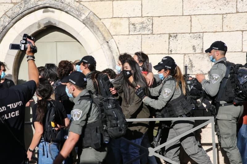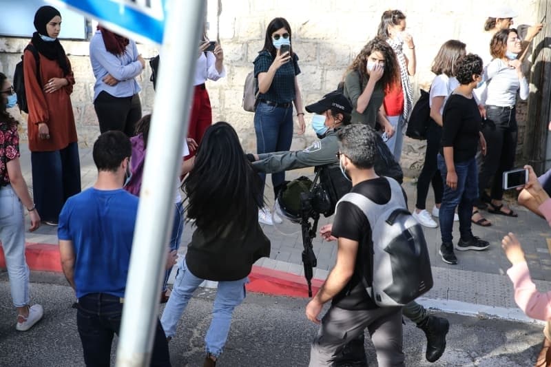 Doğu Kudüs'ün Selahaddin caddesi'nde toplanan bir grup Filistinli kadın aktivist, 32 yaşındaki otizmli İyad Hallak'ın İsrail polisi tarafından şehit edilmesi ve İsrail'in Filistinlilere yönelik ihlallerini protesto etti.